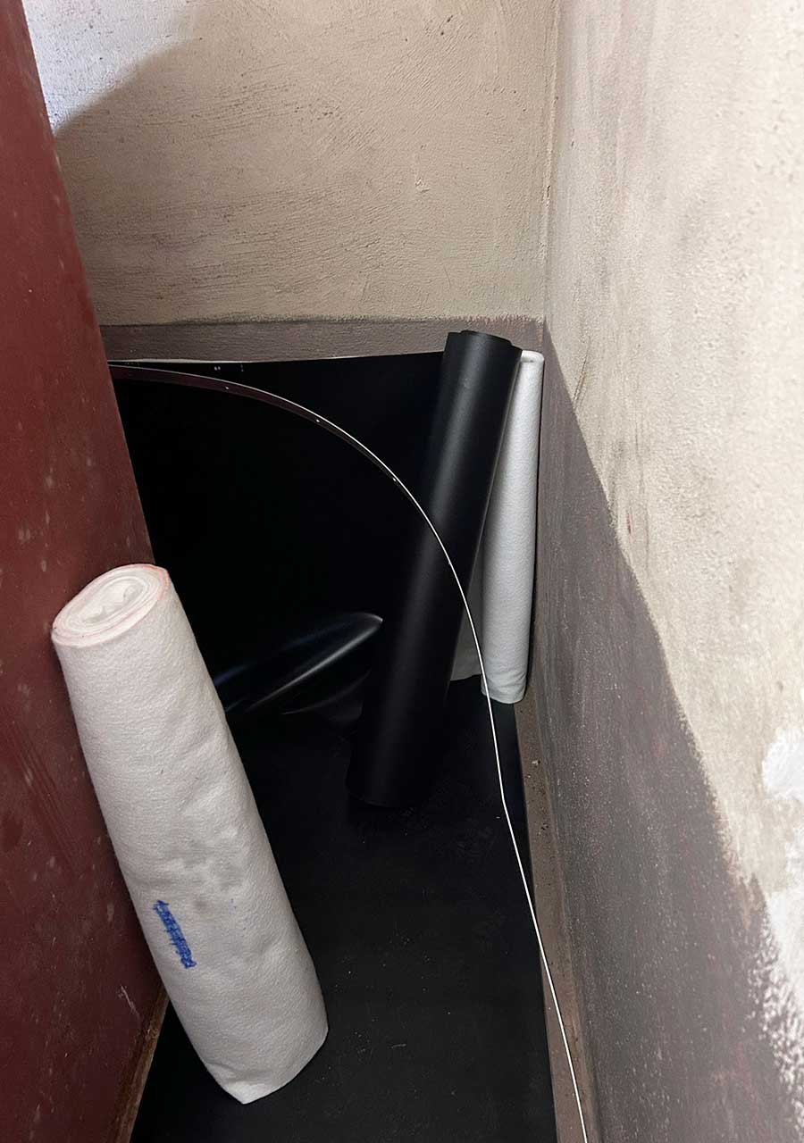 Beheben der Mängel im Auffangraum (Risse im Mauerwerk) über den Einbau einer Tankraumfolie / Tankraumauskleidung