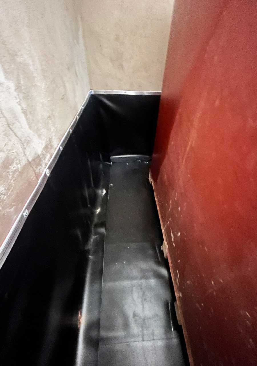 Fertige Tankrauauskleidung (WHG-Wanne, bzw. Auffangraum) nachdem alle Stösse fachgerecht verschweißt wurden