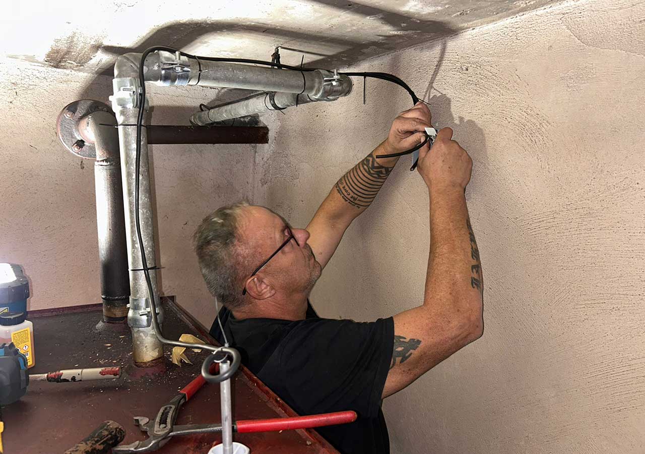 Feinarbeit eines Monteurs am Grenzwertgeber (GWG), bei einem GWG alter Bauart empfiehlt sich der Tausch durch einen neuen (keine jährlichen Wartungen)