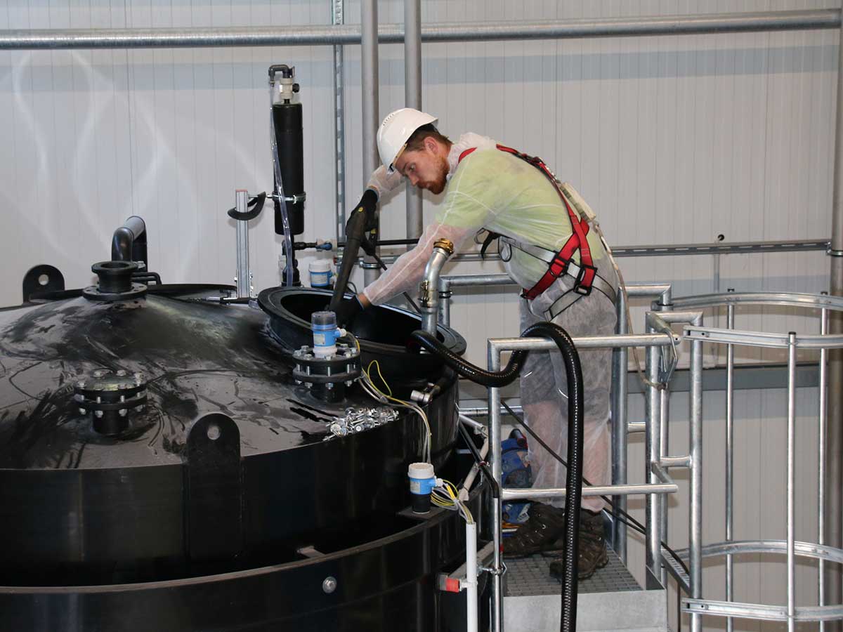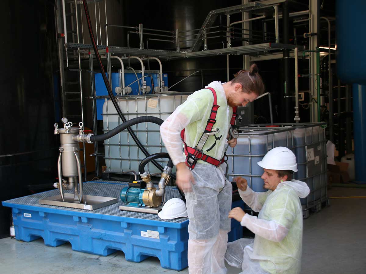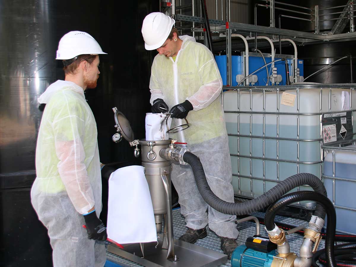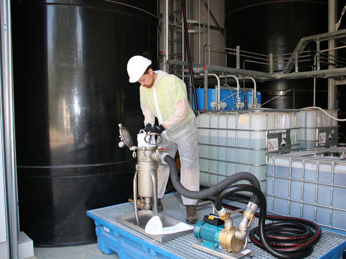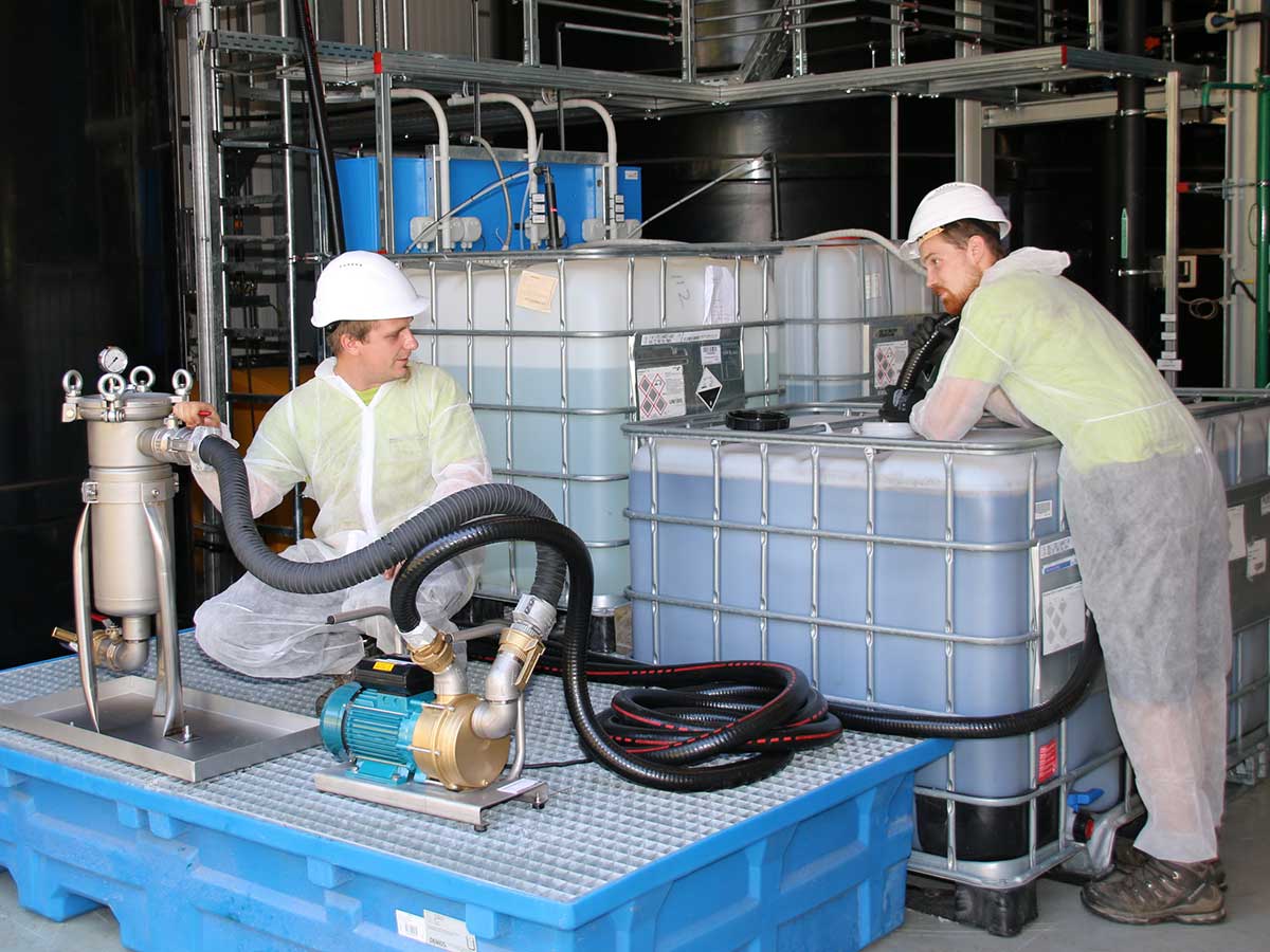 Gemäß der Bundes-Bodenschutz- und Altlastenverordnung (BBodSchV) dürfen keine belasteten Sickerwässer aus Deponien in die Natur geleitet werden. Ein Verfahren nach aktuellem Stand der Technik, zur Reinigung von kontaminiertem Sickerwasser ist ein mehrstufiges Verfahren mit einer biologischen Stufe und nachgeschalteten Filterungen über Aktivkohlefilter. In der biologischen Stufe werden Bakterienkulturen zur Reinigung des aufgefangenen Sickerwassers genutzt. Glycerin dient dabei als Nahrungsmittel für die eingesetzten Mikroorganismen und wird über automatisierte Dosierungssysteme in den laufenden Prozess eingebracht. Die Steuerung eines solchen Reinigungsprozesses stellt höchste Anforderungen an die Dosierungspräzision und Reinheit der verwendeten Beigaben. Verunreinigte Medien können schnell den gesamten Prozess und damit die gesamte Anlage zum Stehen bringen.