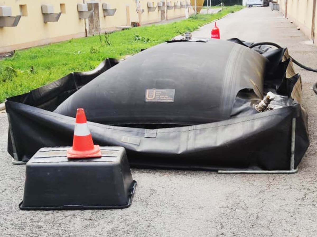 Das restliche Öl aus dem Erdtank wird für die Dauer der Arbeiten, in speziellen Blasen zwischengelagert
