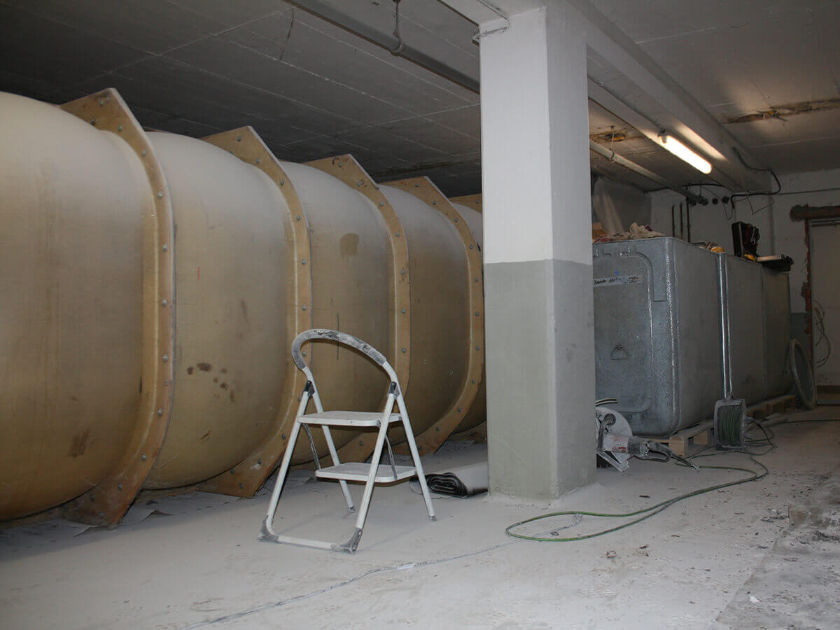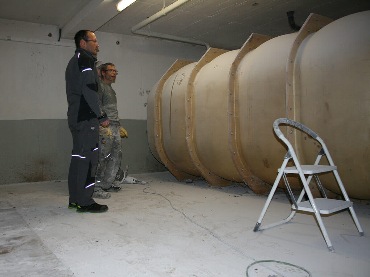 Demontage einer Tankanlage (2 x 30 Tsd Liter) aus GFK (Glasfaserverstärkter Kunststoff)