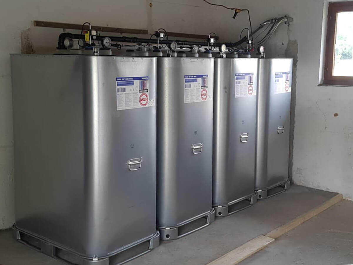 Neutankanlage (4.000 Liter) / Fa. Schütz Tank-in-Tank Stahl / Reihenaufstellung