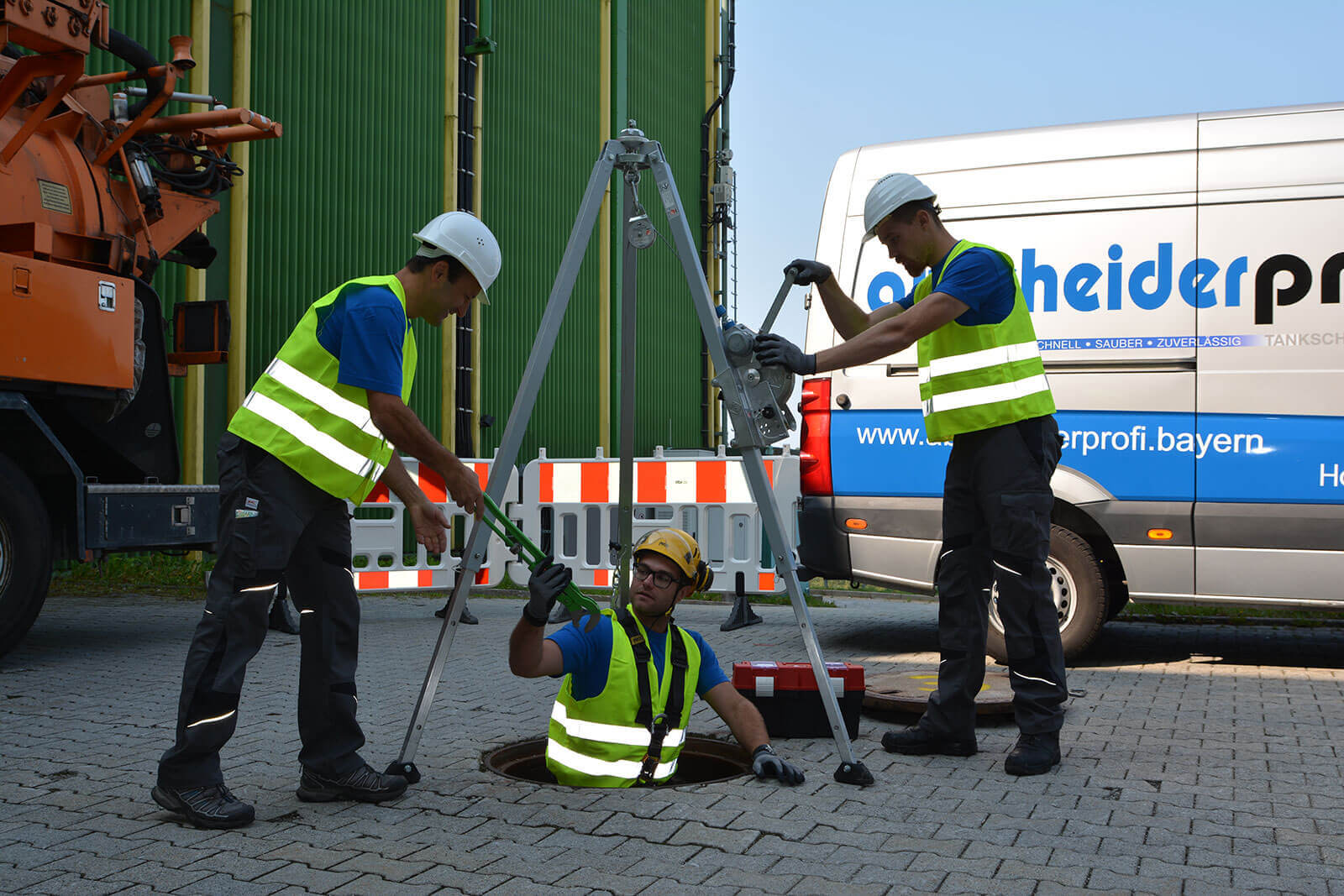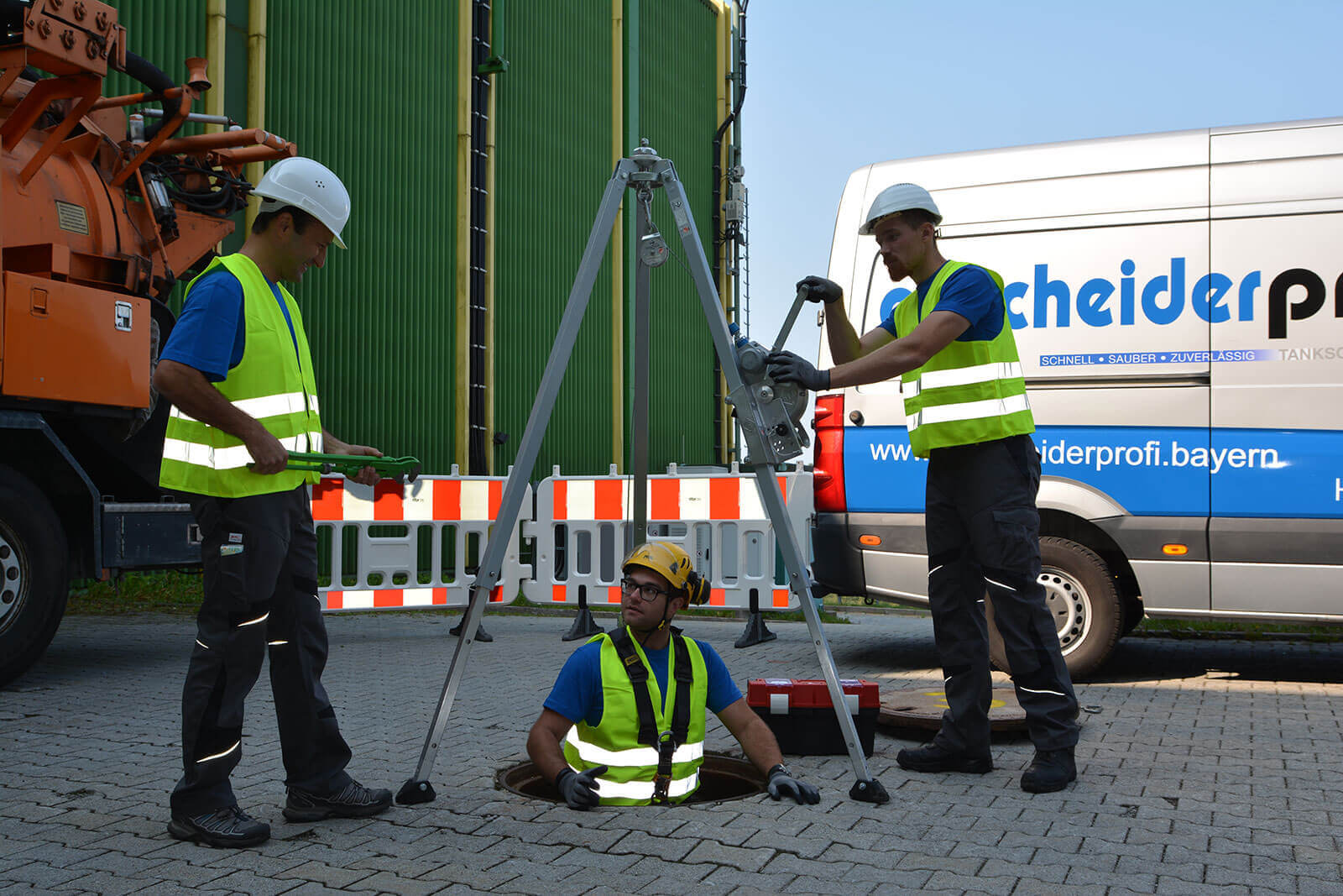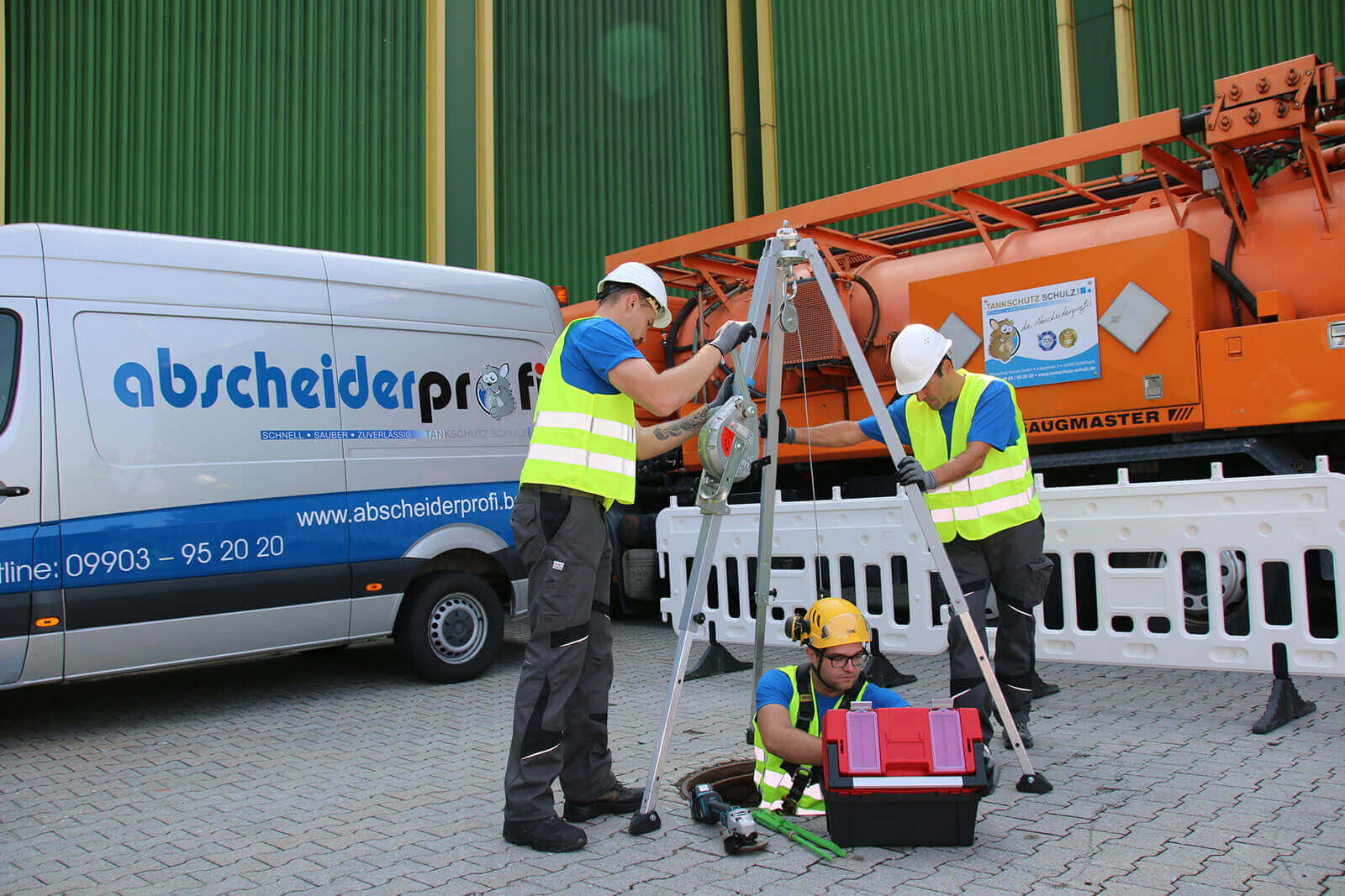 Hier: Serviceteam bei der Sanierung eines Leichtflüssgkeitsabscheiders / Ölabscheiders eines Industriebetriebs.