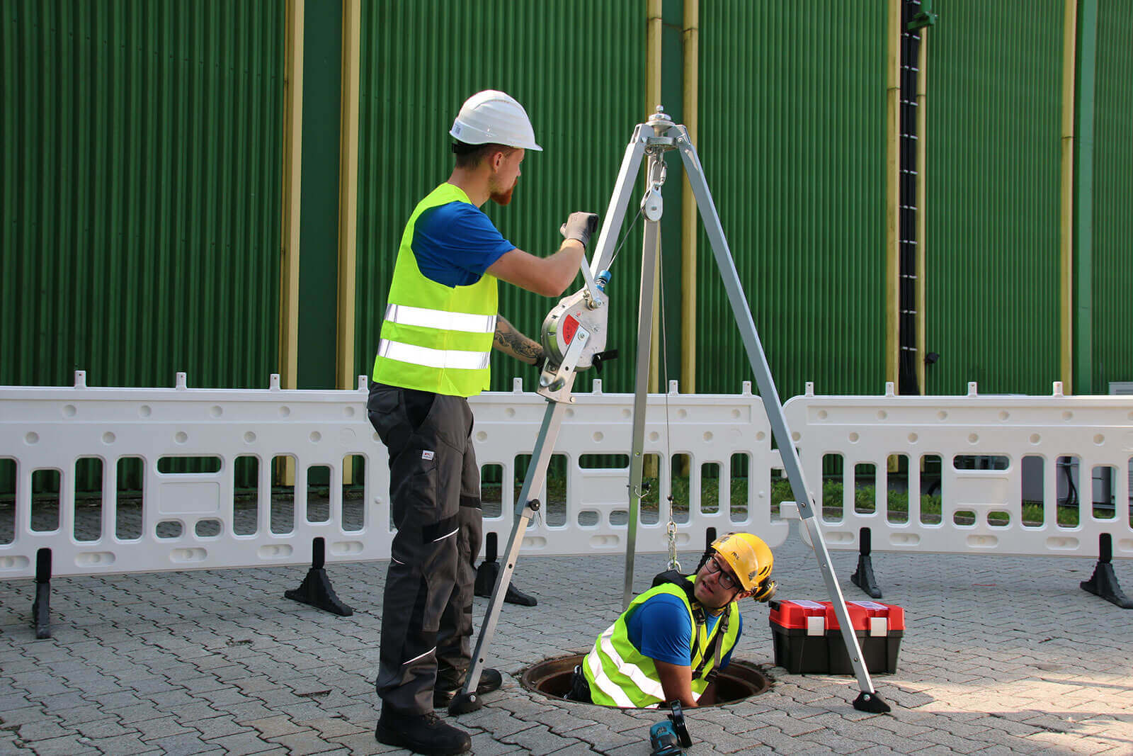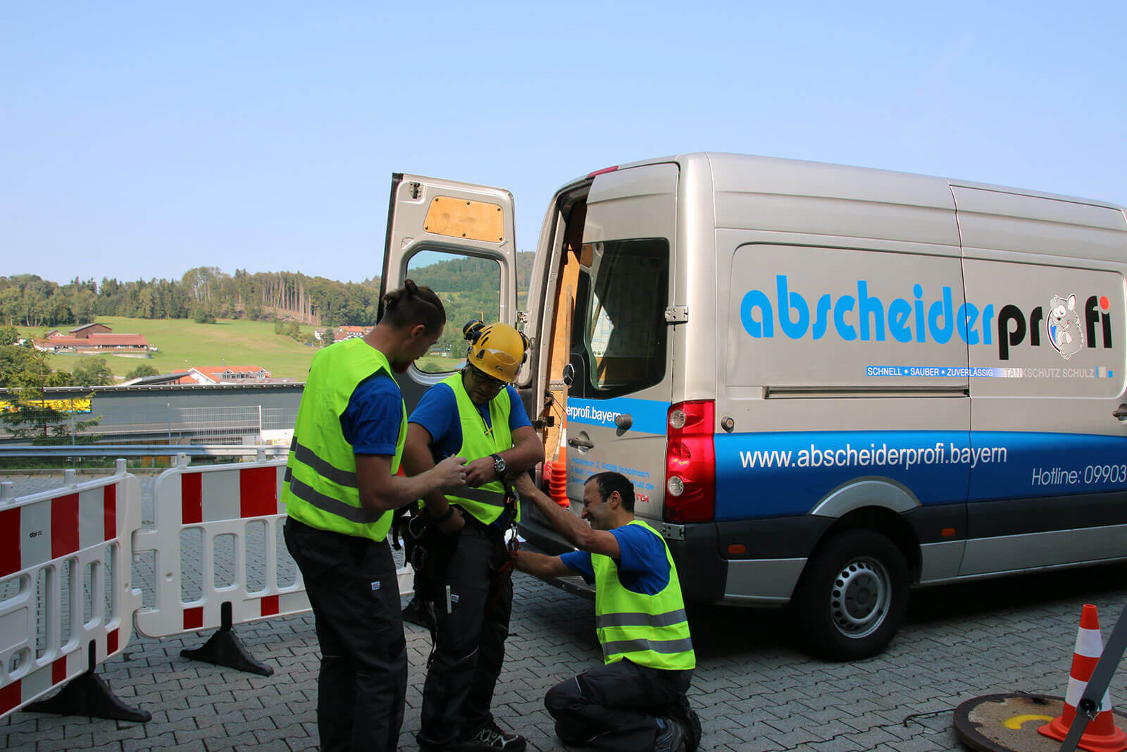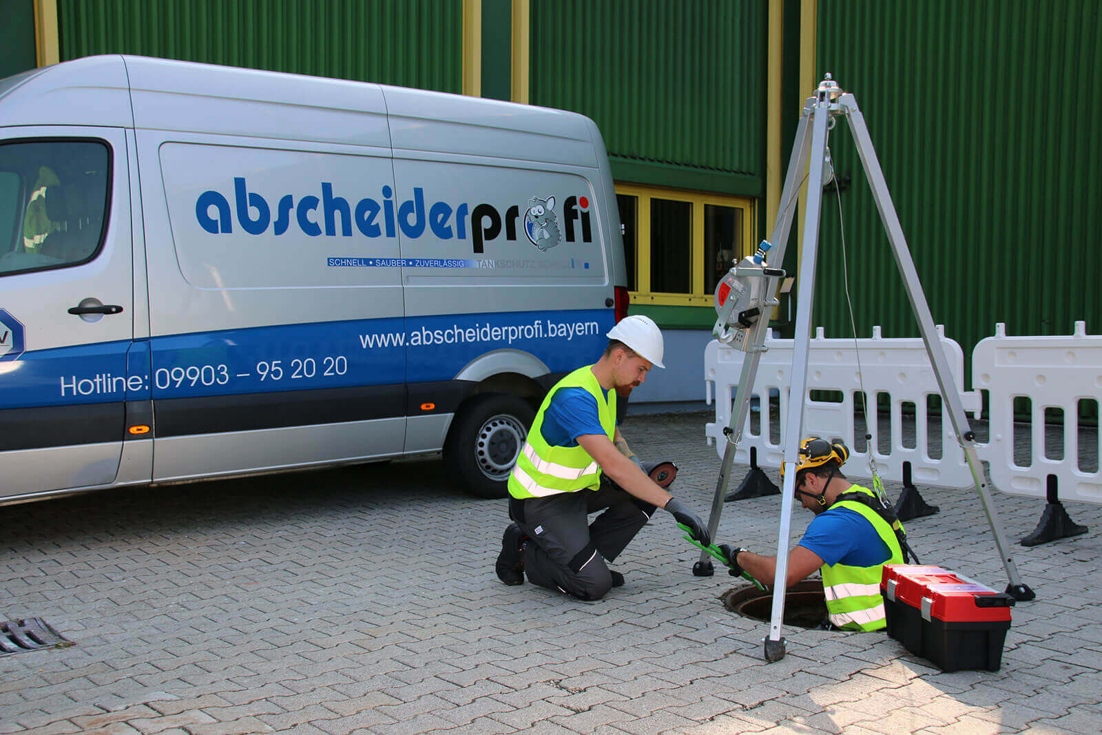 Hier: Serviceteam bei der Sanierung eines Leichtflüssgkeitsabscheiders / Ölabscheiders eines Industriebetriebs.