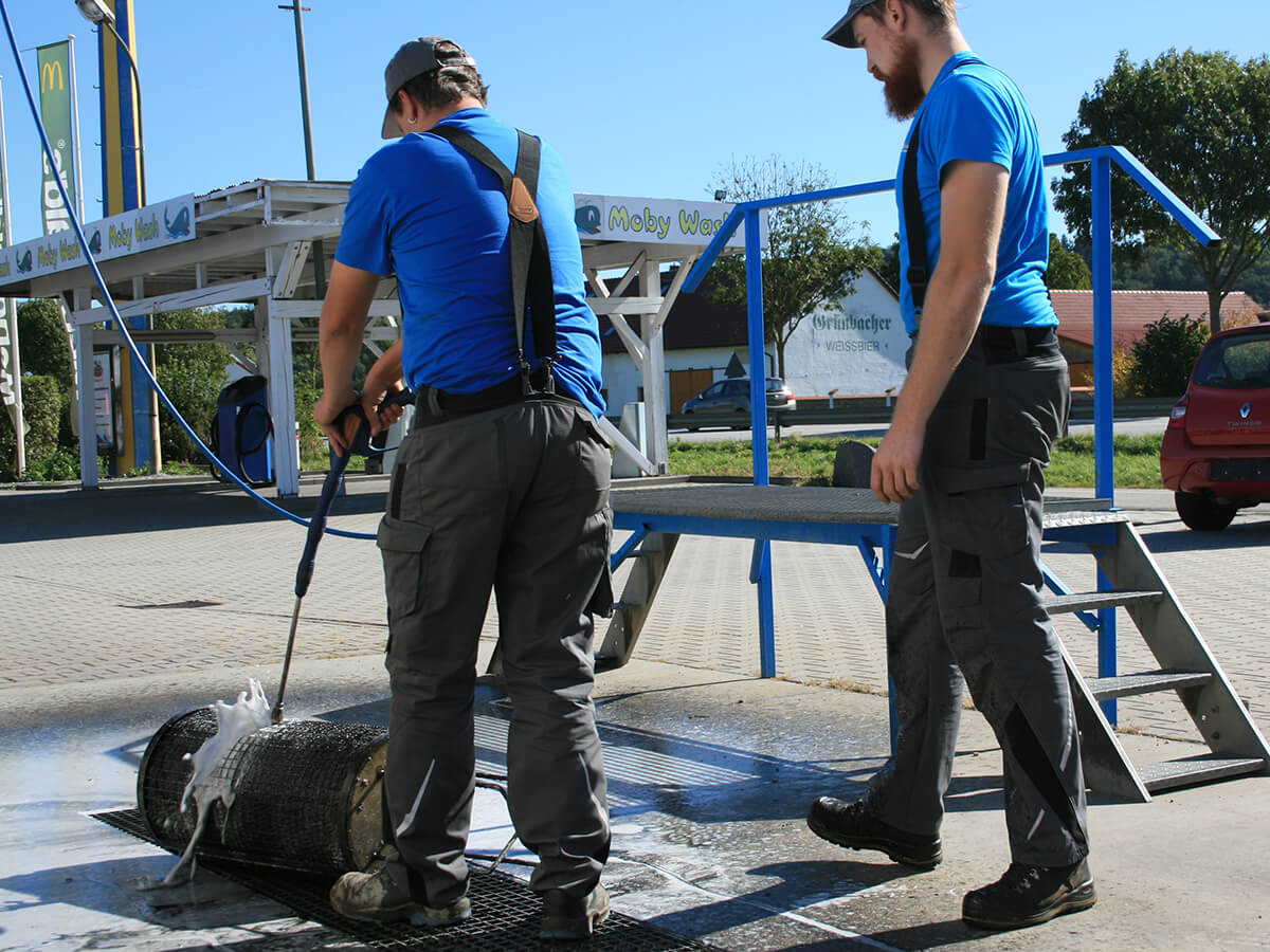 Bei großen bzw. hoch frequentierten Waschstraßen ist es besonders wichtig, keine oder möglichst geringen Stillstandszeiten zu verursachen. Die eigentliche Waschstraße und der Leichtflüssigkeitsabscheider sind die beiden Hauptbestandteile der Gesamtanlage und der Ausfall einer Komponente bringt den Betrieb zum Erliegen. Bei solchen Sanierungsprojekten ist es besonders wichtig, dass Entsorgung und Sanierung Hand in Hand gehen und mit entsprechender Schlagkraft durchgeführt werden können.