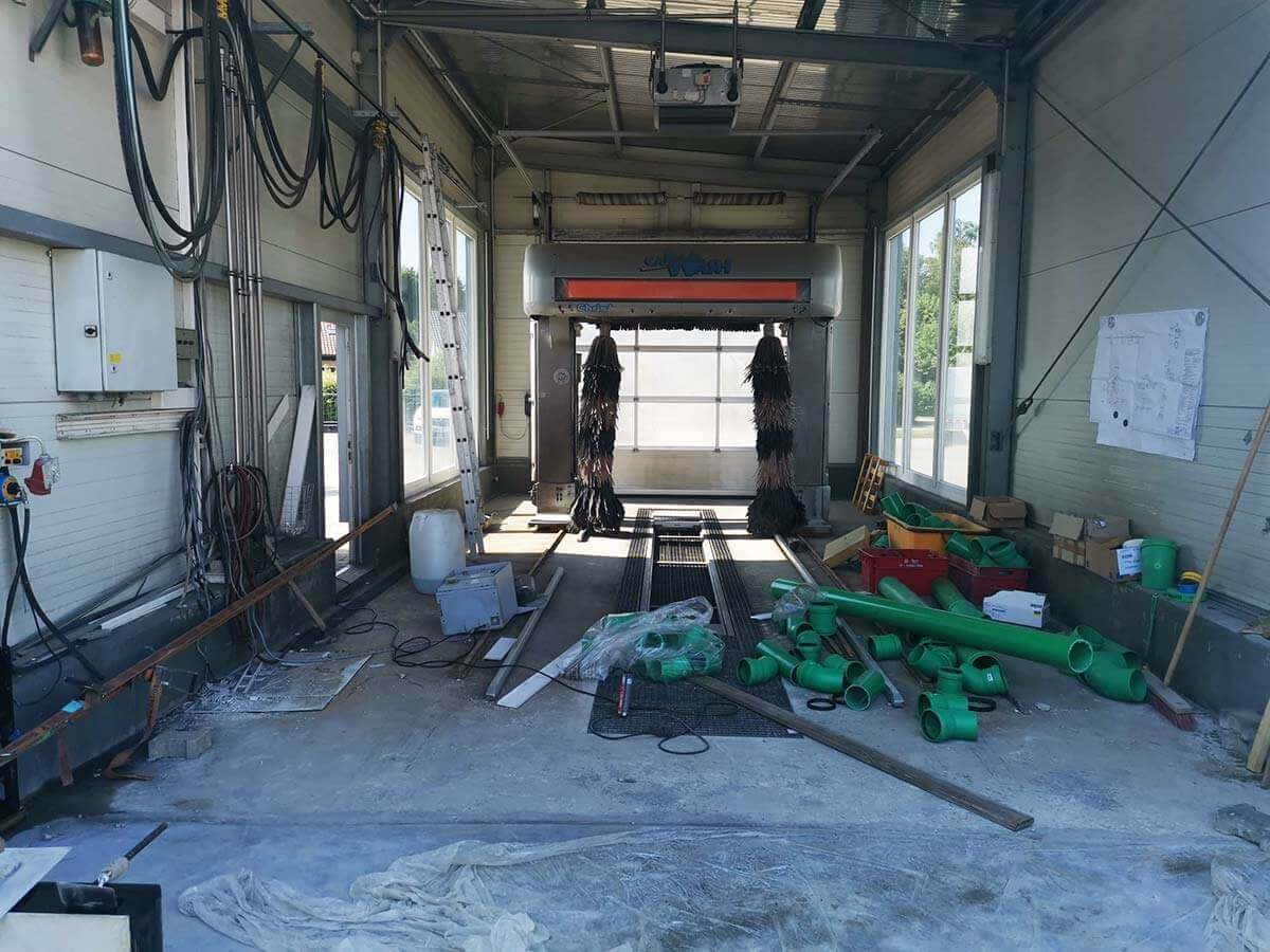 Waschhalle mit alter Waschanlage, Gebäude bereits verlängert/angebaut