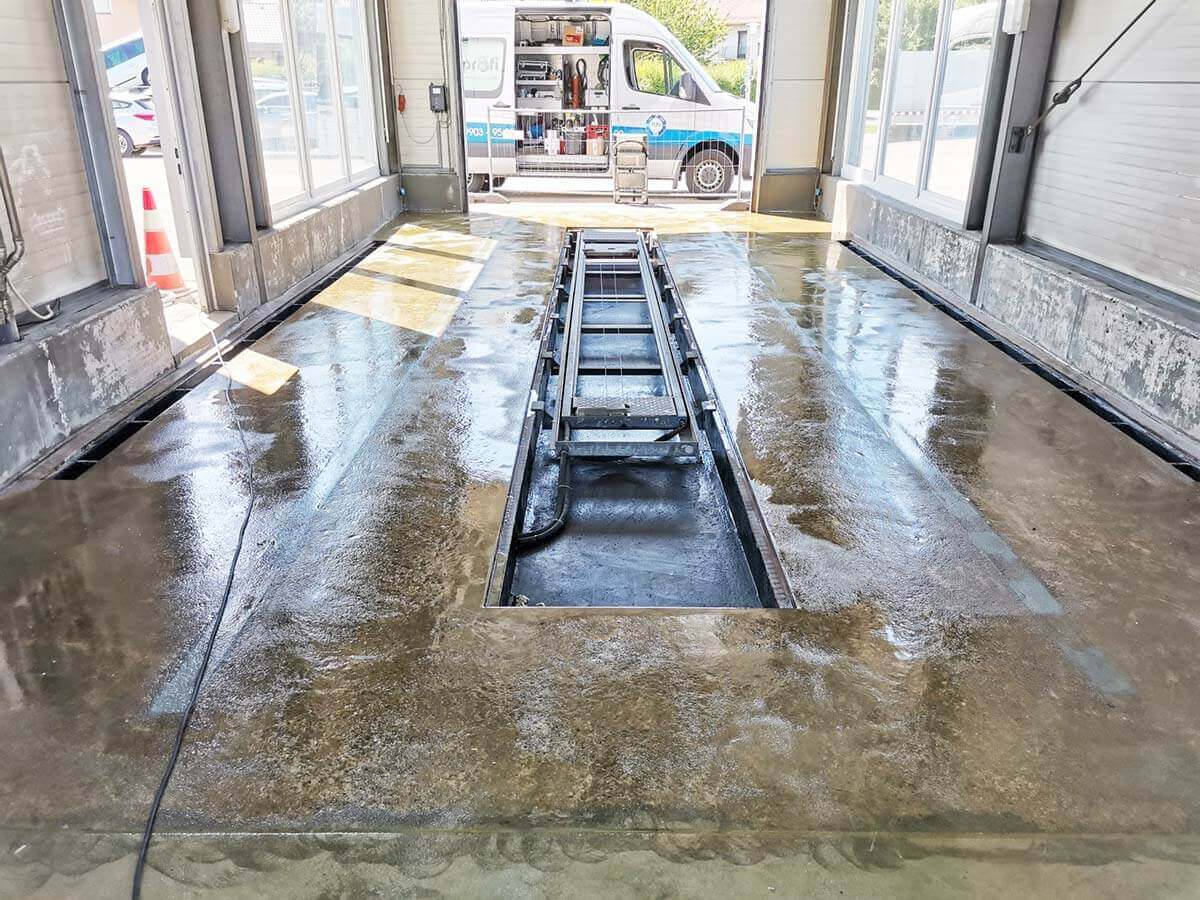 Waschhalle mit Rutschsicherer WHG-Beschichtung