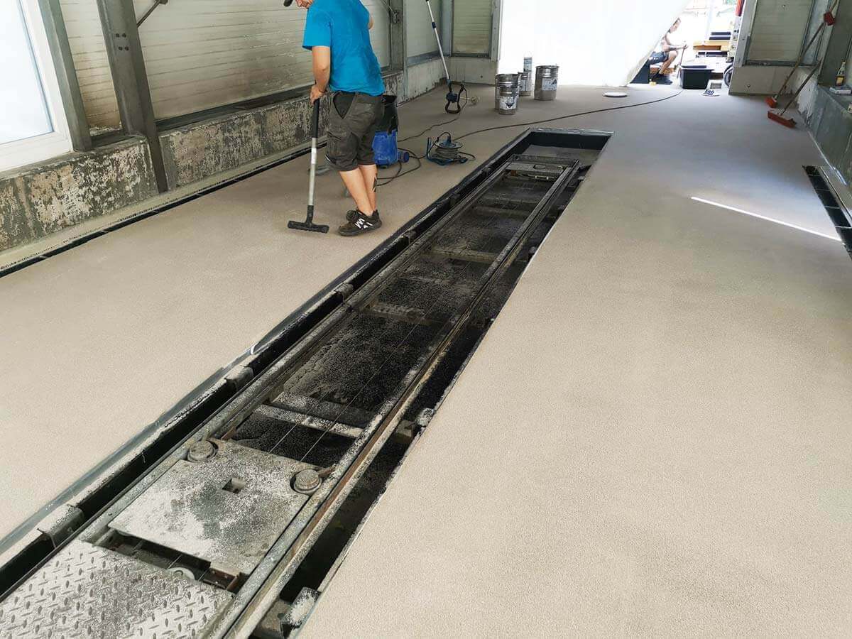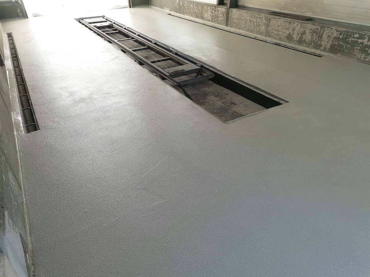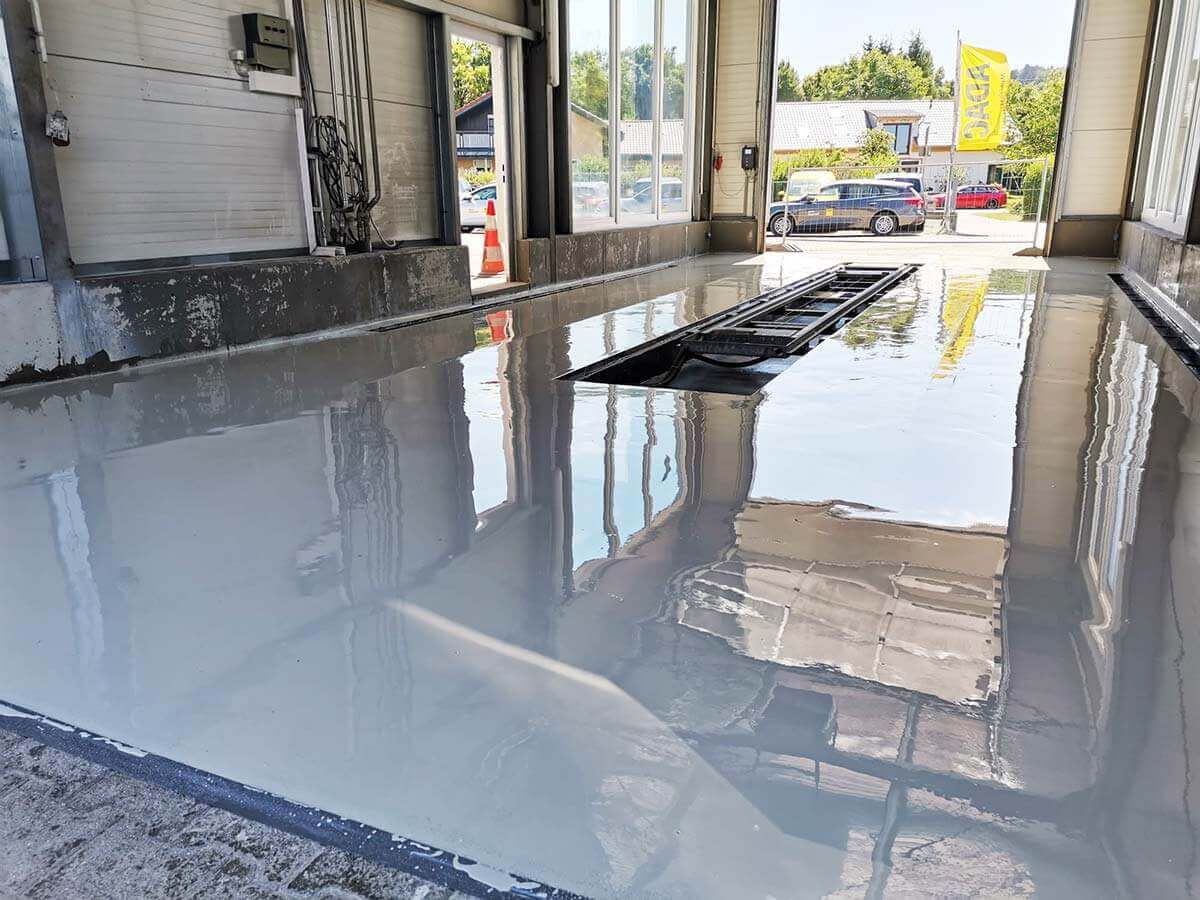 Waschhalle mit aufgebrachter WHG-Deckschicht / WHG-Boden