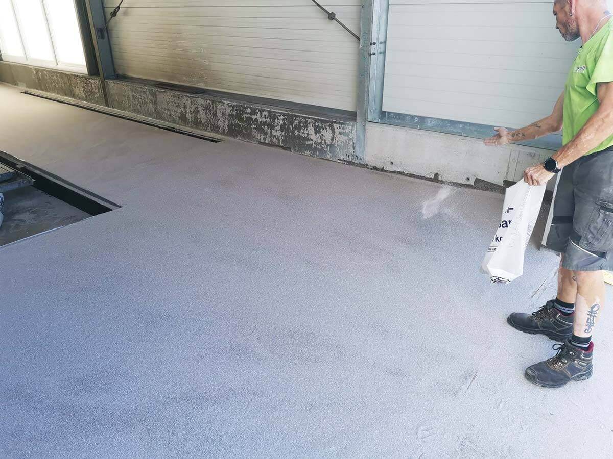 In das WHG-Beschichtungssystem kann Quarzsand zur Erzeugung der gewünschten Oberflächenstruktur in einer Aufbauschicht eingearbeitet werden
