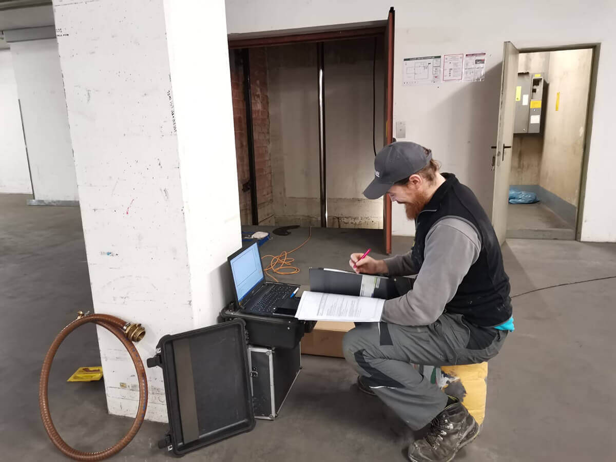 Dichtprüfung eines Erdschutzrohr bei hydraulischen Aufzug
