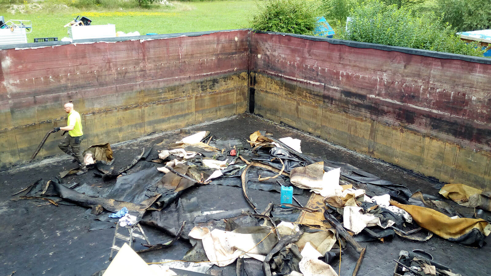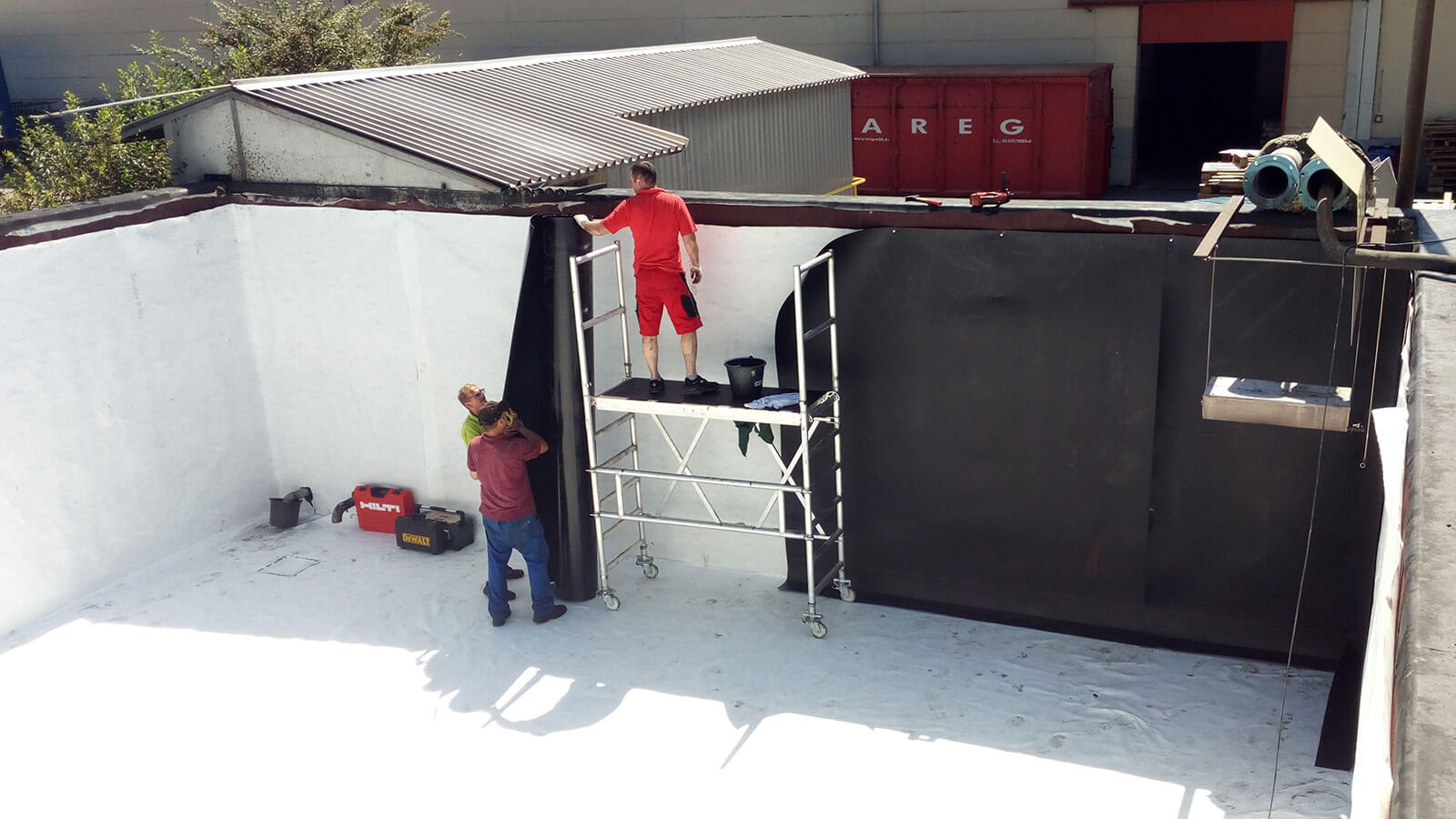 Hier: Grundsanierung eines Färbereibeckens im Industrieumfeld. Entsorgung des Mediums, sowie der alten Beckenwandauskleidung. Neuauskleidung des Beckens mit abschließender Dichtheitsprüfung und Inbetriebnahme.