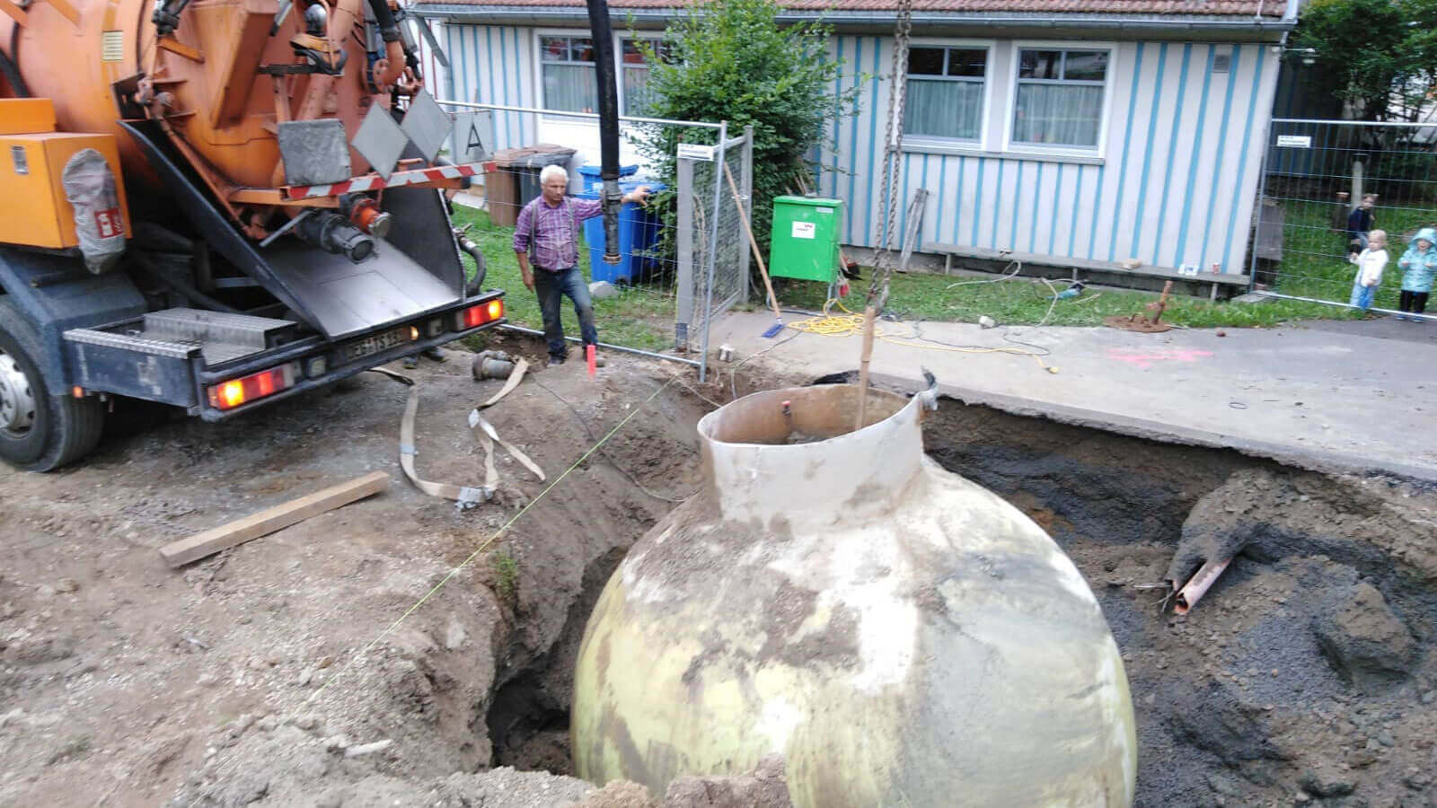 Stilllegung und Entsorgung eines Kugel-Erdtanks aus GFK (Glasfaserverstärkter Kunststoff)