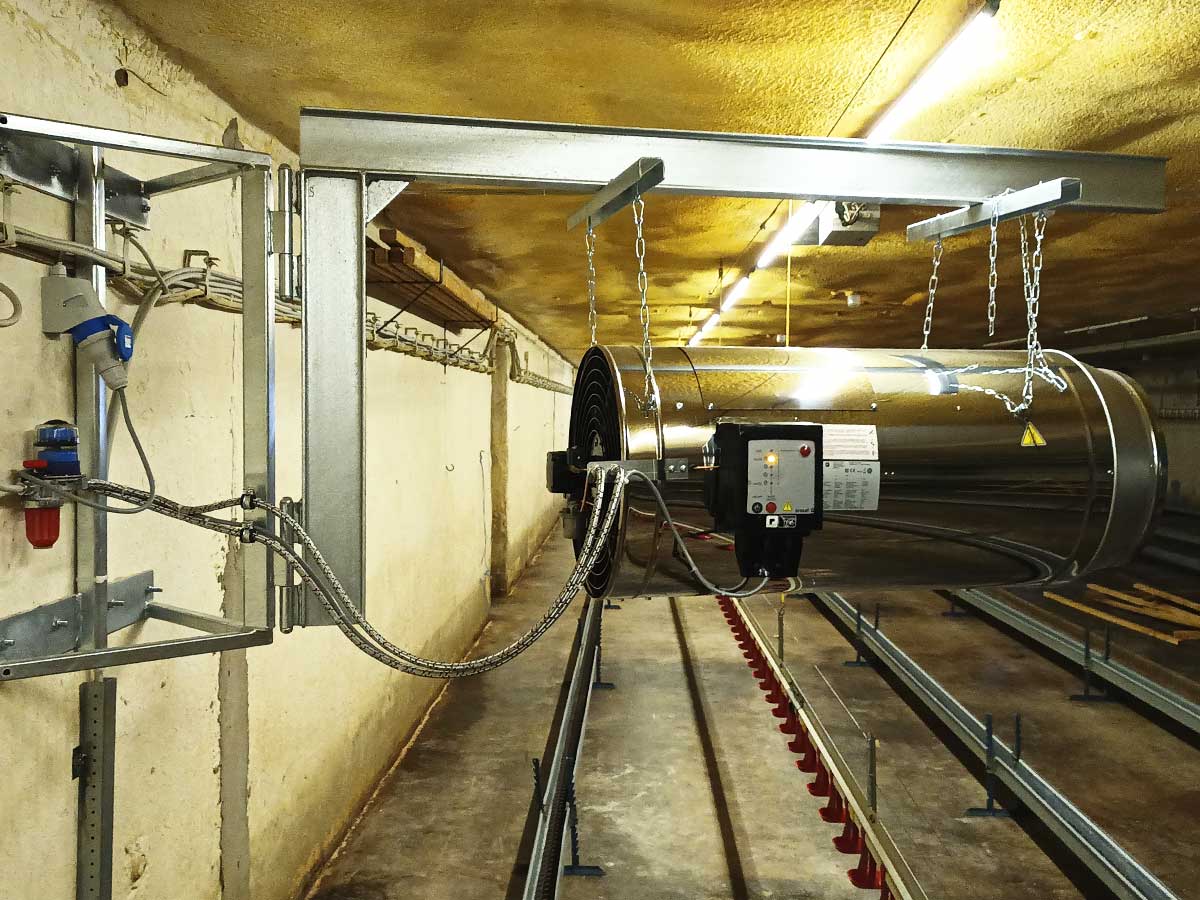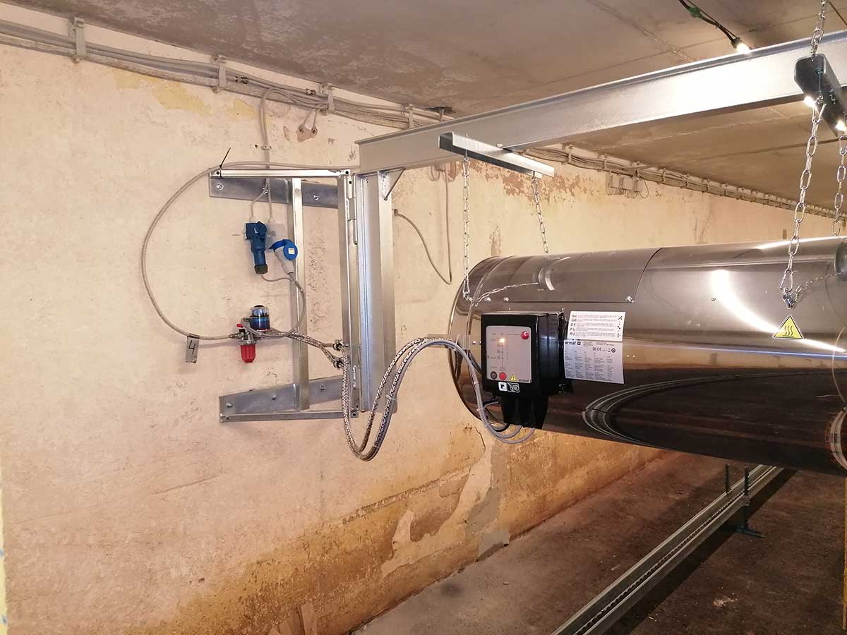 Detailsicht: Heizkanone mit Ölversorgung (Einstrang)