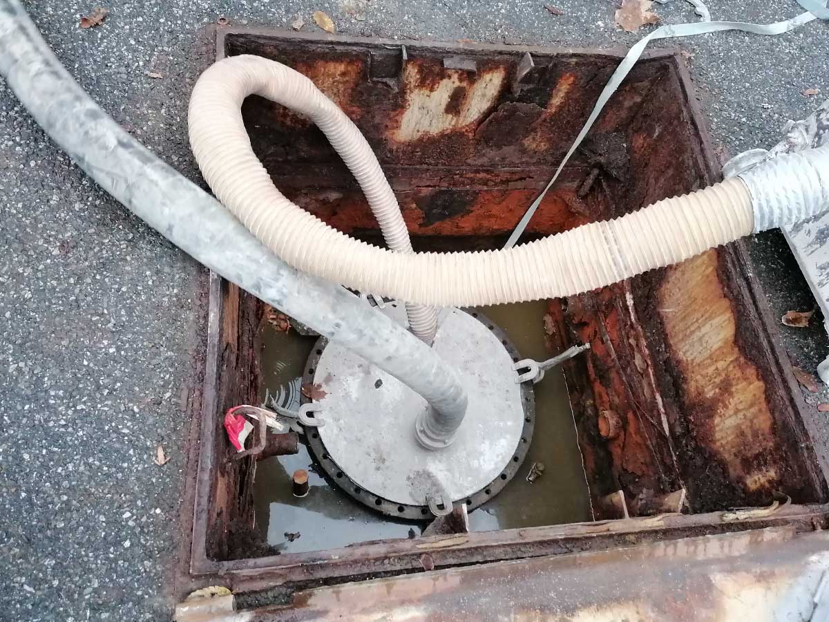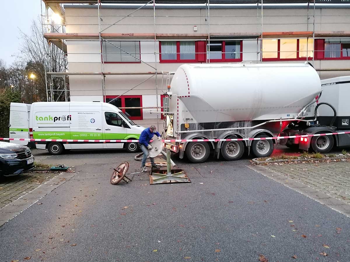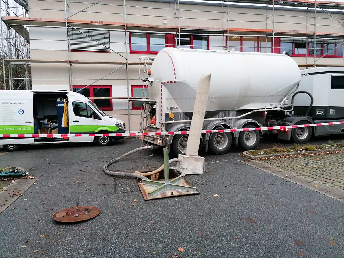 Steinmehlverfüllung eines stillgelegten Erdtanks zur Absicherung gegen Einsturz