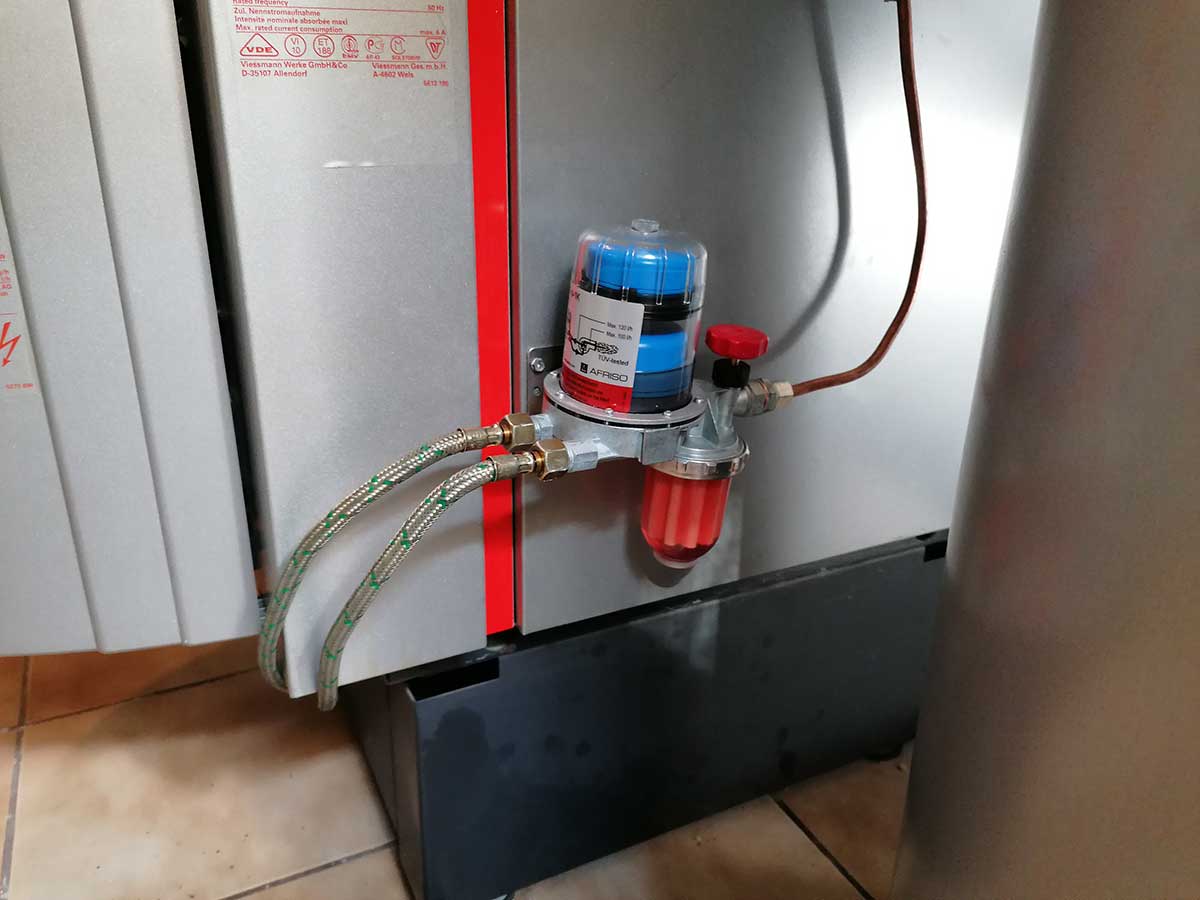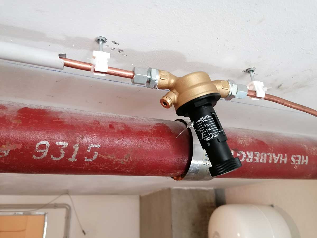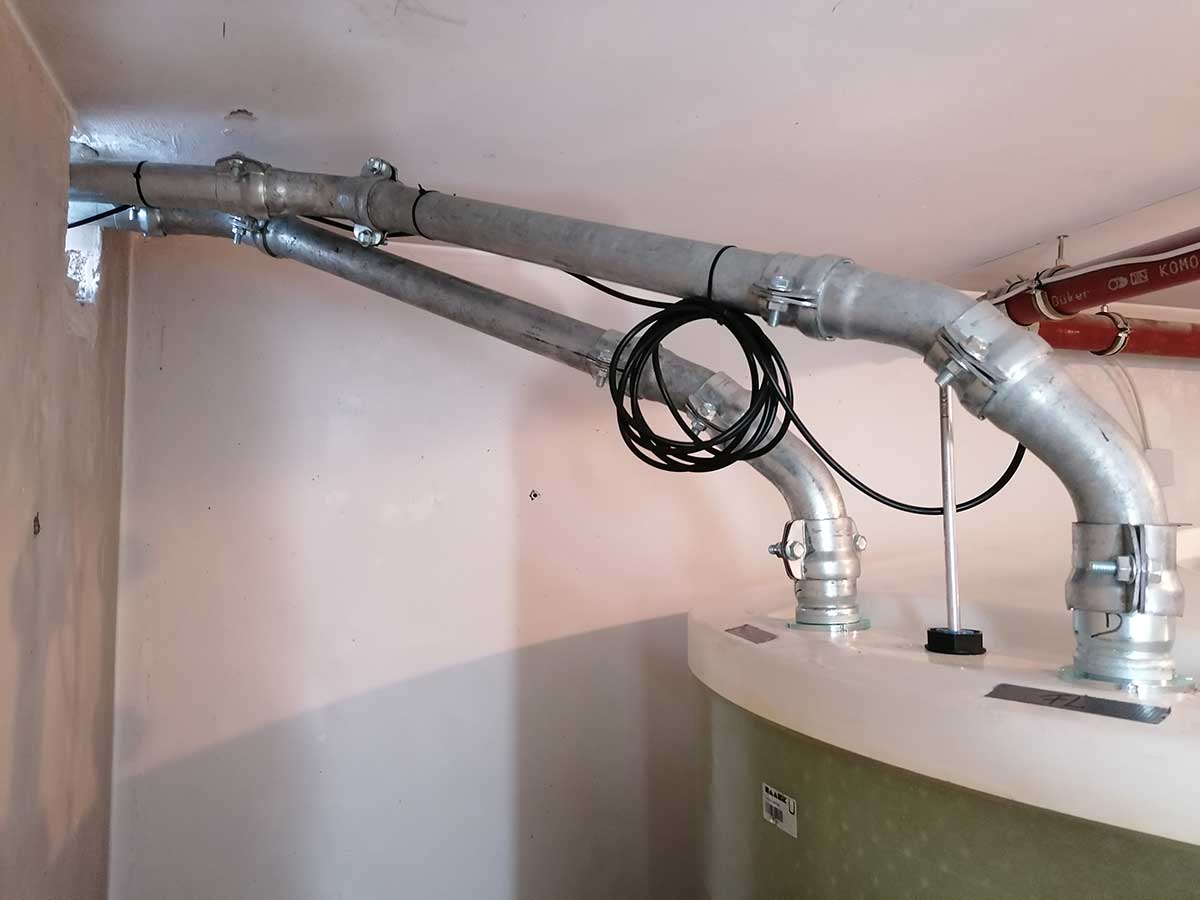 Befüllleitung und Entlüftungsleitung über LoroX, bei Hochwasseranlagen ist auch die Entlüftungsleitung mit Schellen gesichert