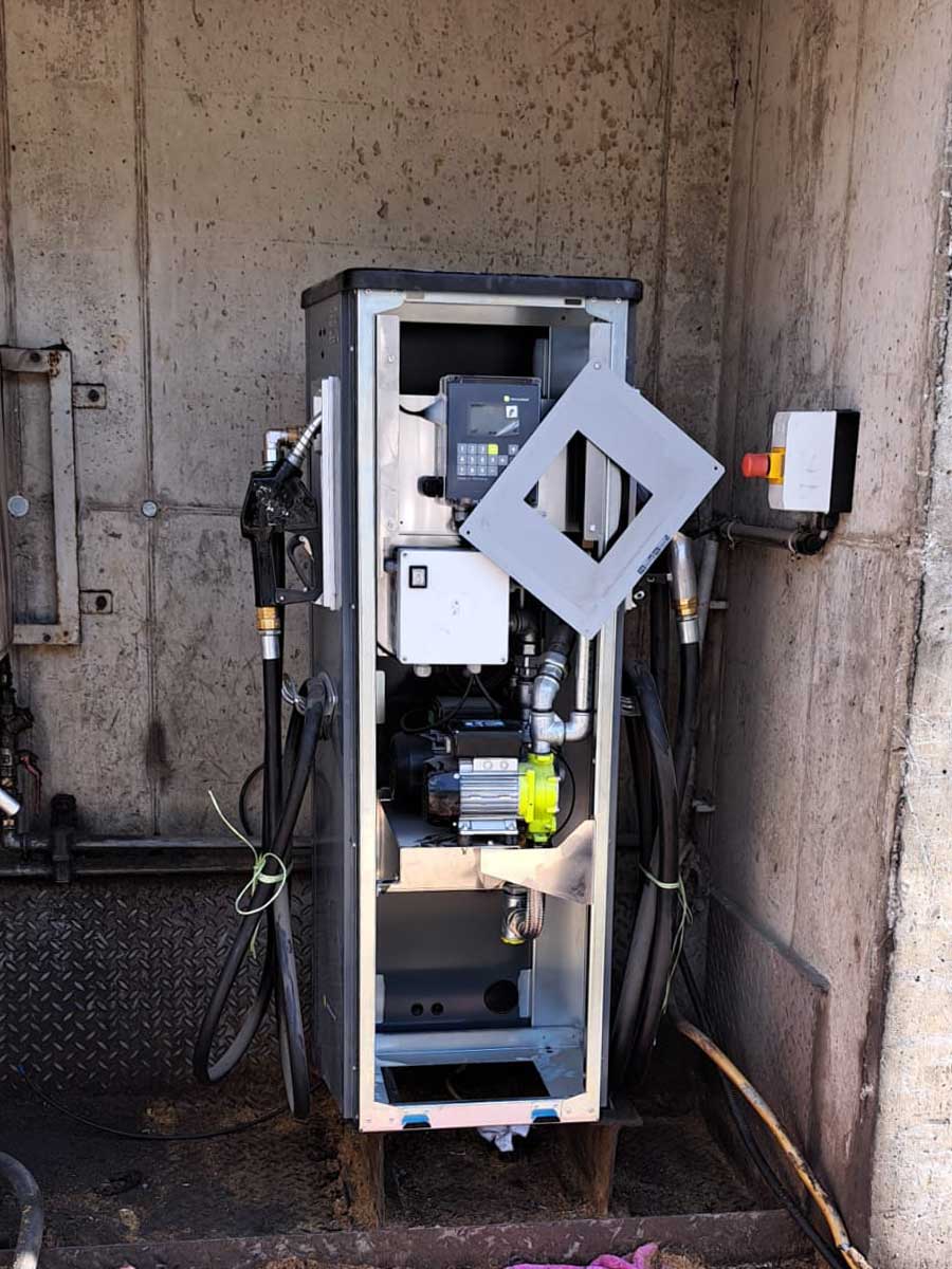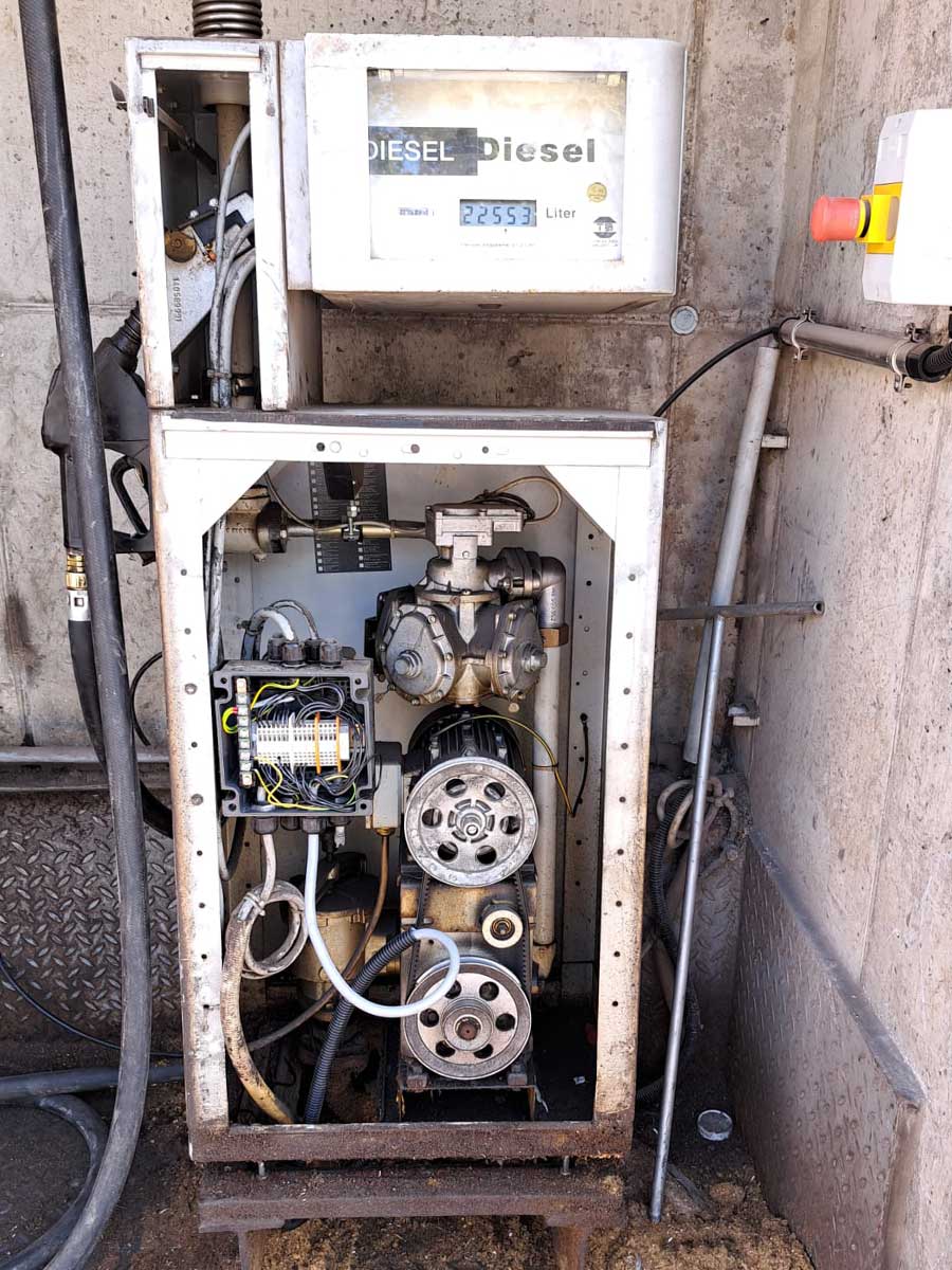 Modernisierung einer veralteten innerbetrieblichen Dieseltankstelle. Ersatz der bestehenden Zapfsäule durch eine neue Zapfsäule mit Tankautomat der Fa. TEC-ALEMIT. Ein modernes Abrechnungssystem (gesteuert über Transponder an der Zapfsäule) sorgt für die innerbetriebliche Überwachung und Zuordnung der Betankungen zu den einzelnen Kostenträgern.