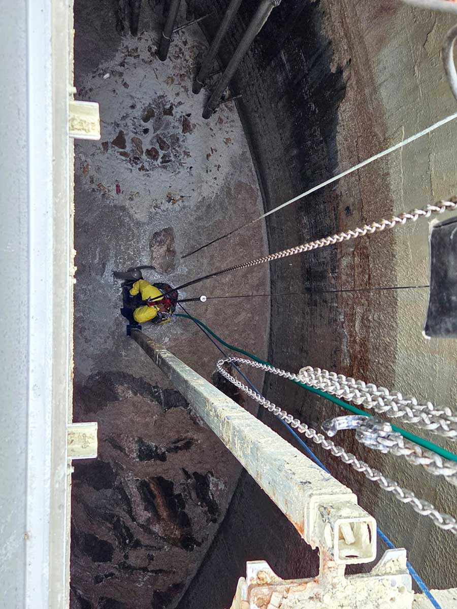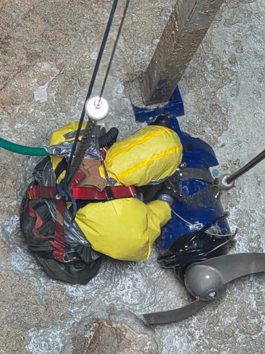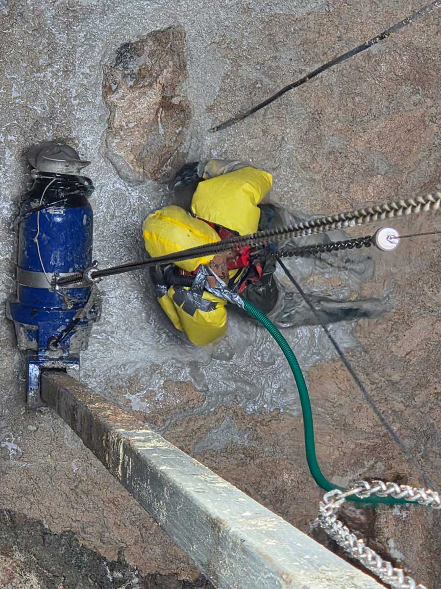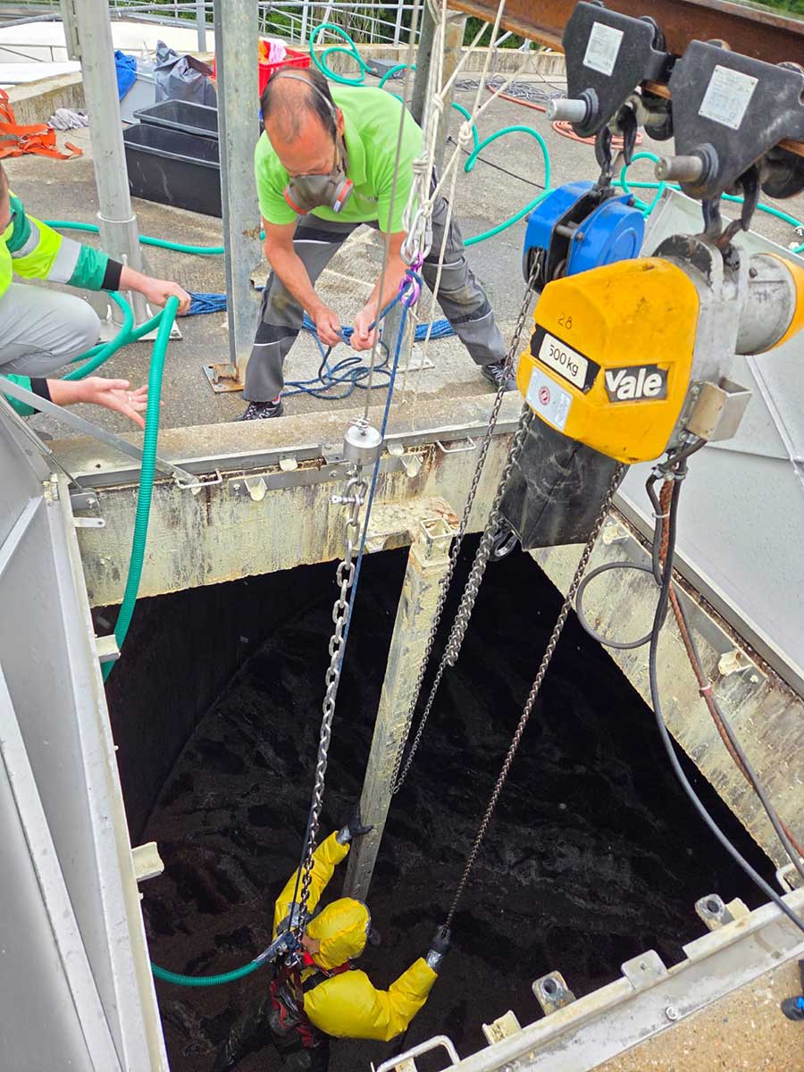 Bergung eines Propellermotors nach Seilriss und Kabelbruch aus Klärbecken