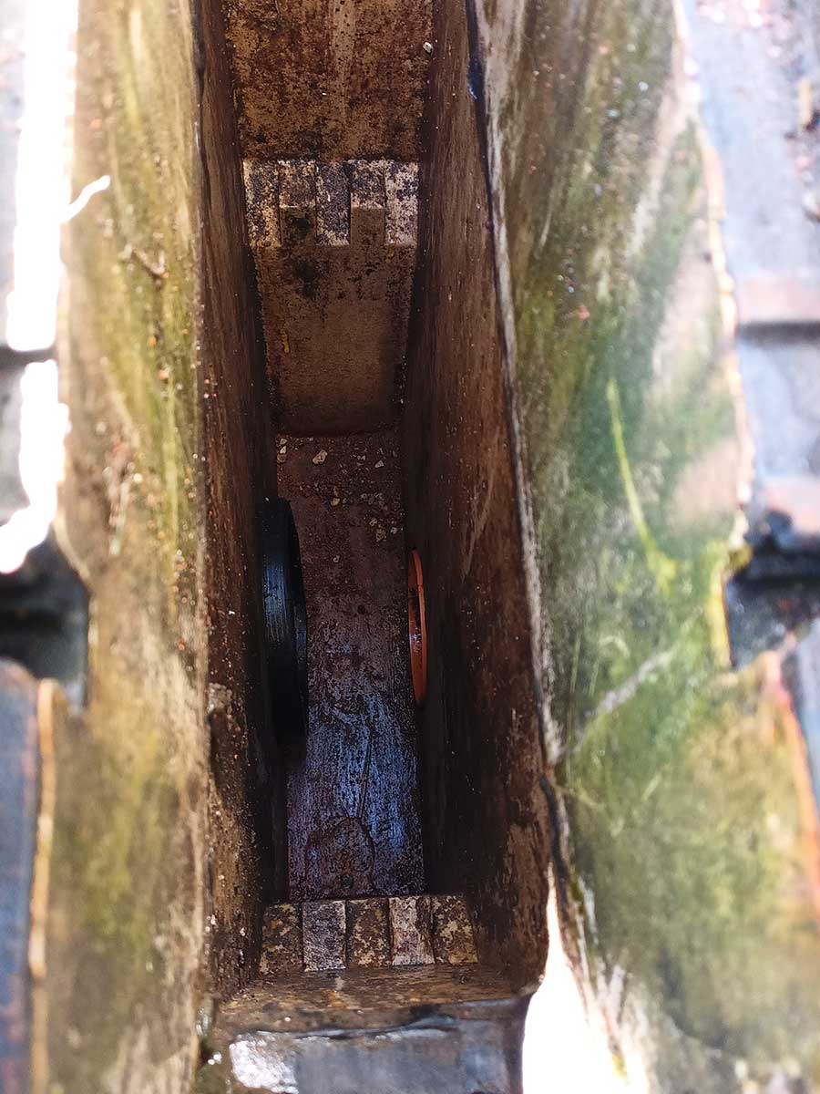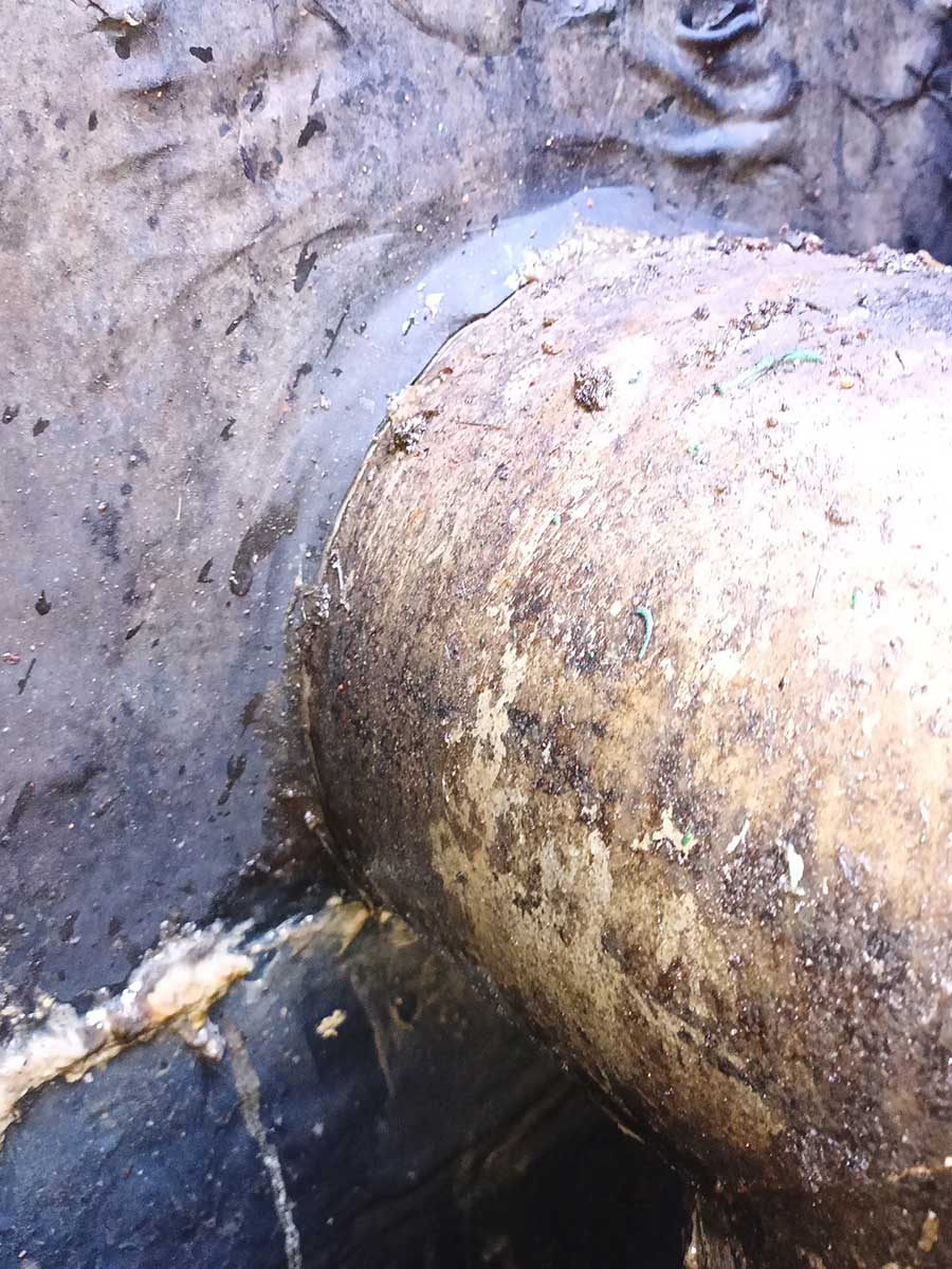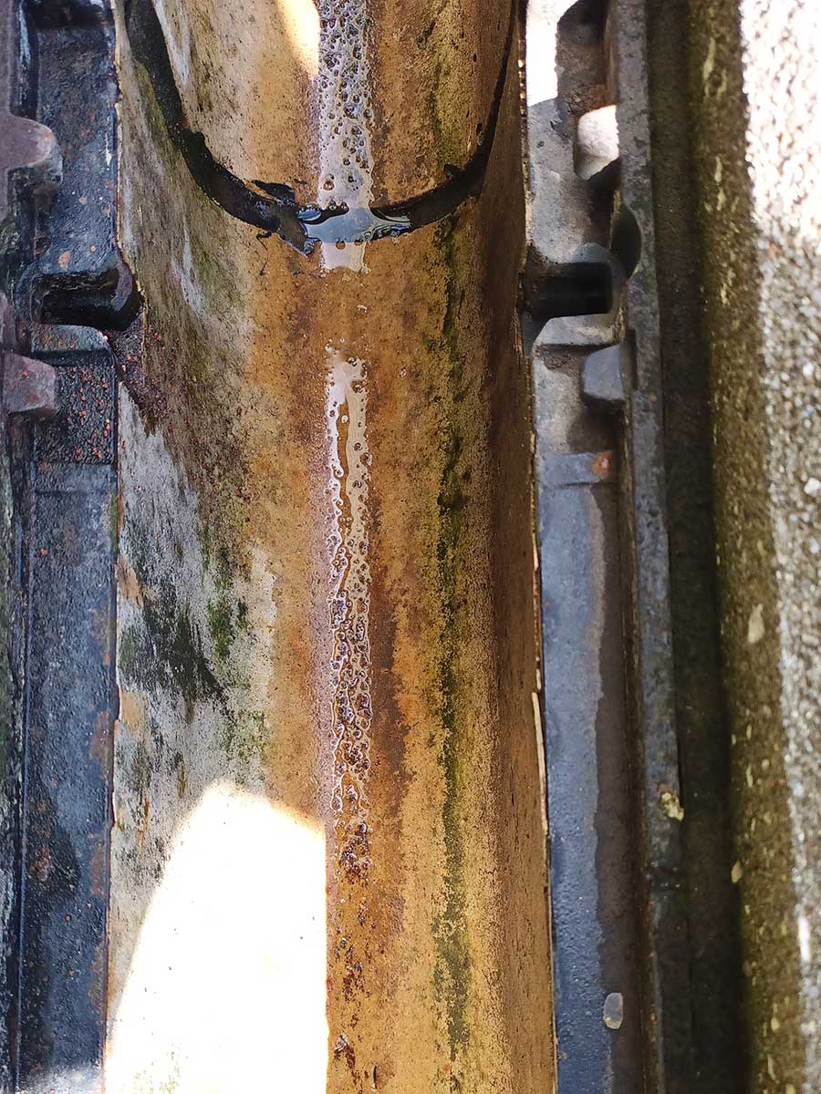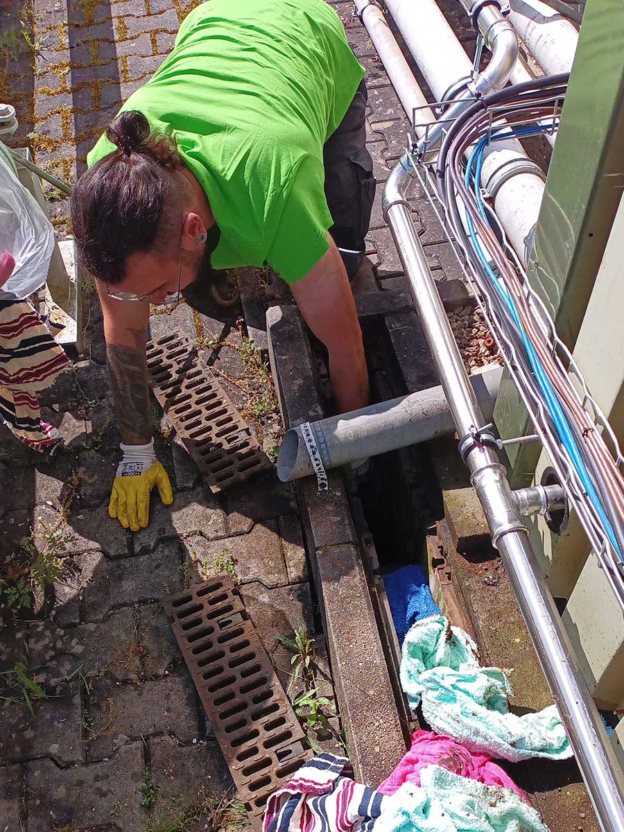 Schadstelle in der Anfallstelle (in der Rinne – Stoß der Abflussleitung)