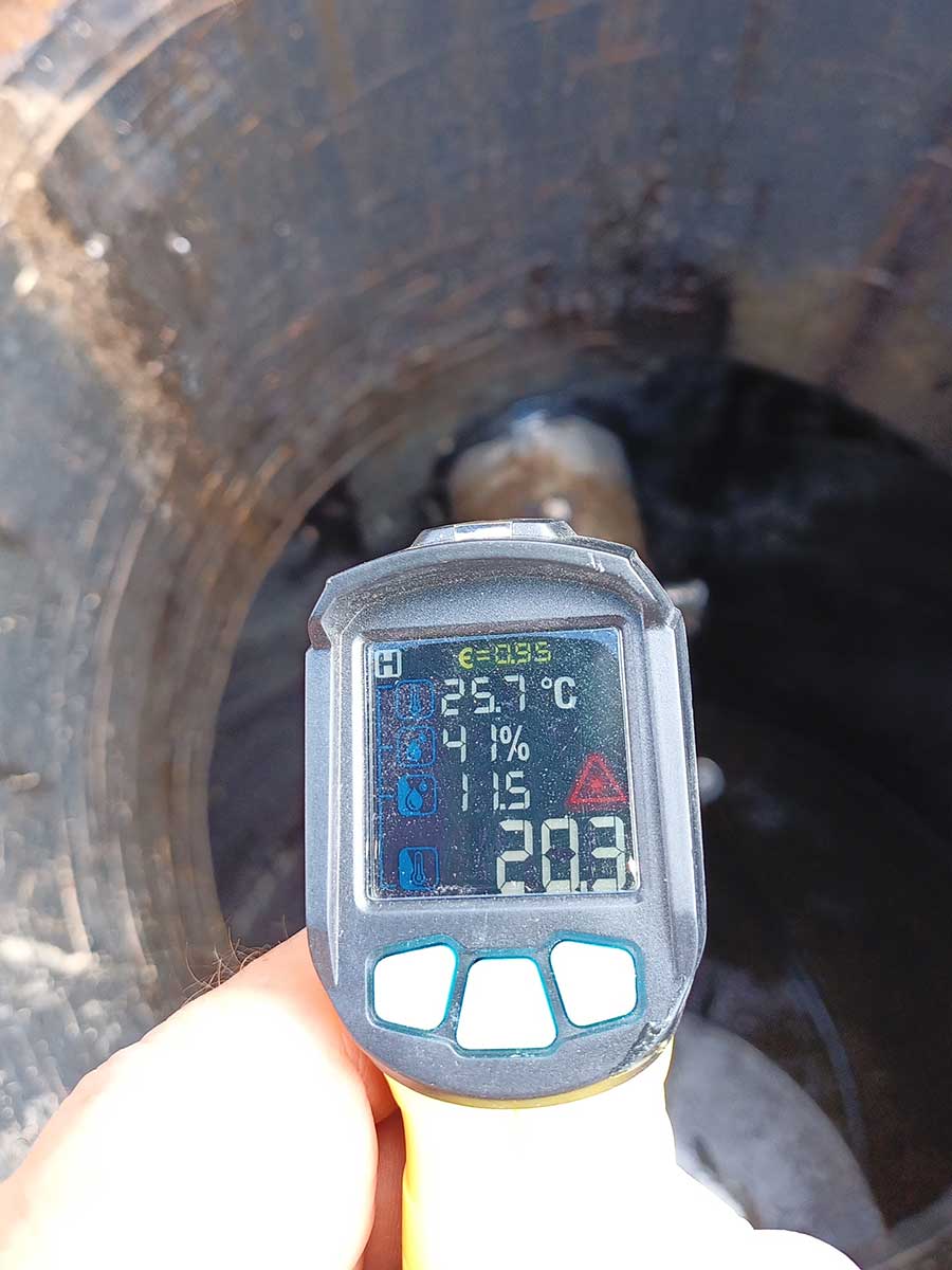 Messung der Umgebungsparameter und Dokumentation (Oberflächentemperatur, Umgebungstemperatur, Luftfeuchte und Tau-Punkt)