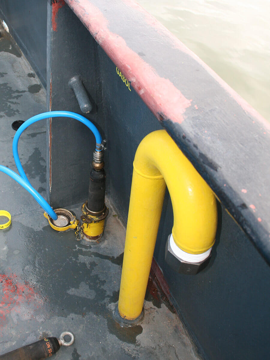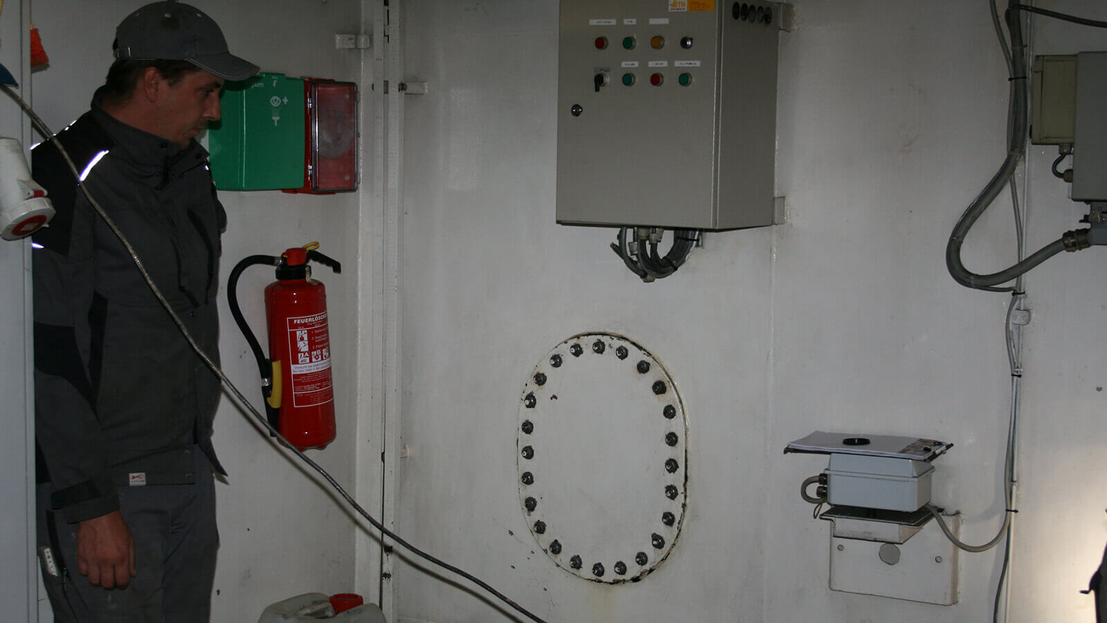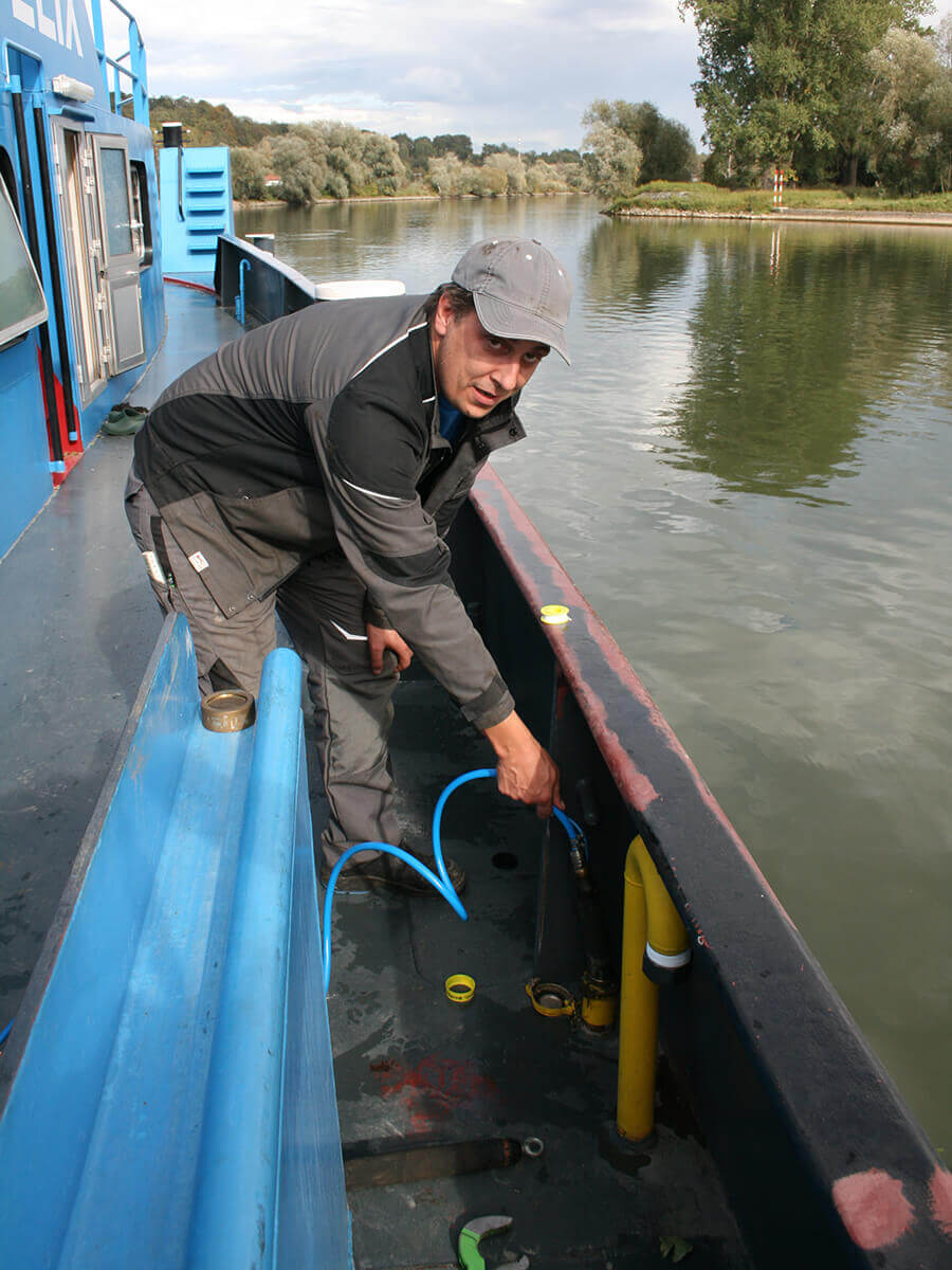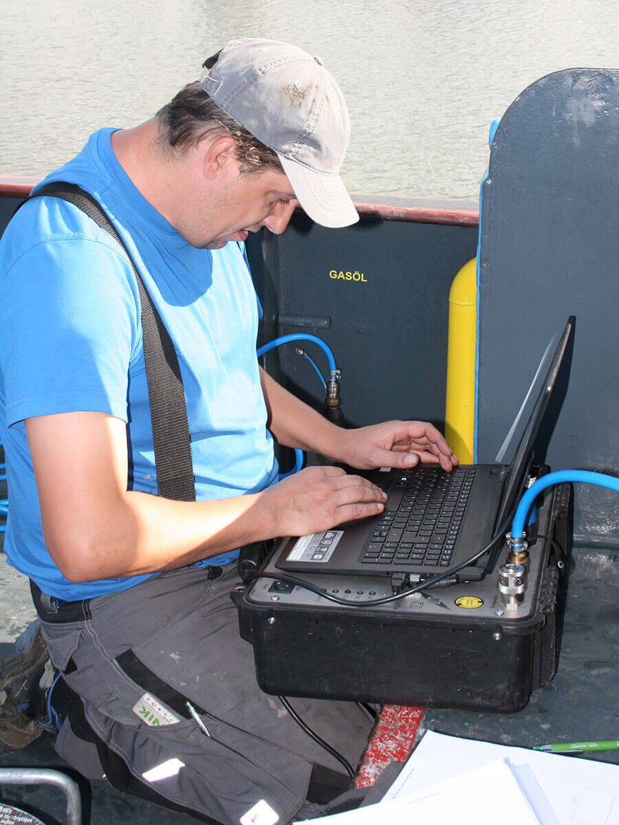 Schiffe mit Dieselantrieb transportieren ihren Treibstoffvorrat (Diesel) bereits "über" Wasser. Bei einem Schaden am Tank und Treibstoffversorgungssystem wäre der Weg ins Wasser sehr kurz und ein größerer Umweltschaden nicht einfach zu vermeiden, geschweige denn zu beheben. Für diese Art von Tanks bzw. Lagerung von Treibstoff (mit Wassergefährdungsklasse) ist eine regelmäßige Revision der Anlage unumgänglich. Im Zuge der Reinigung des Schiffstanks wird durch die einsteigenden Monteure der Tank bereits optischen in Augenschein genommen und auf grobe Mängel oder Korrosion untersucht. Bei erhöhtem Gefahrpotenzial kann bei den Revisionsarbeiten auch die Dichtheit des Tanks inkl. Leitungen mitgeprüft werden. Hier wurde ein Druck-Prüfverfahren angewendet, welches die Prüfung (Druck & Dauer) gemäß den, in der anzuwendenden DIN-Norm festgelegten Werten durchführt. Der Messverlauf mit Prüfungsergebnis wird in einem entsprechendem Messprotokoll festgehalten und für den Kunden dokumentiert.