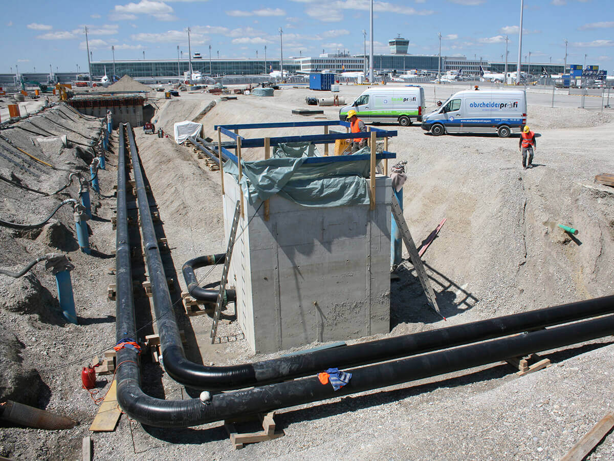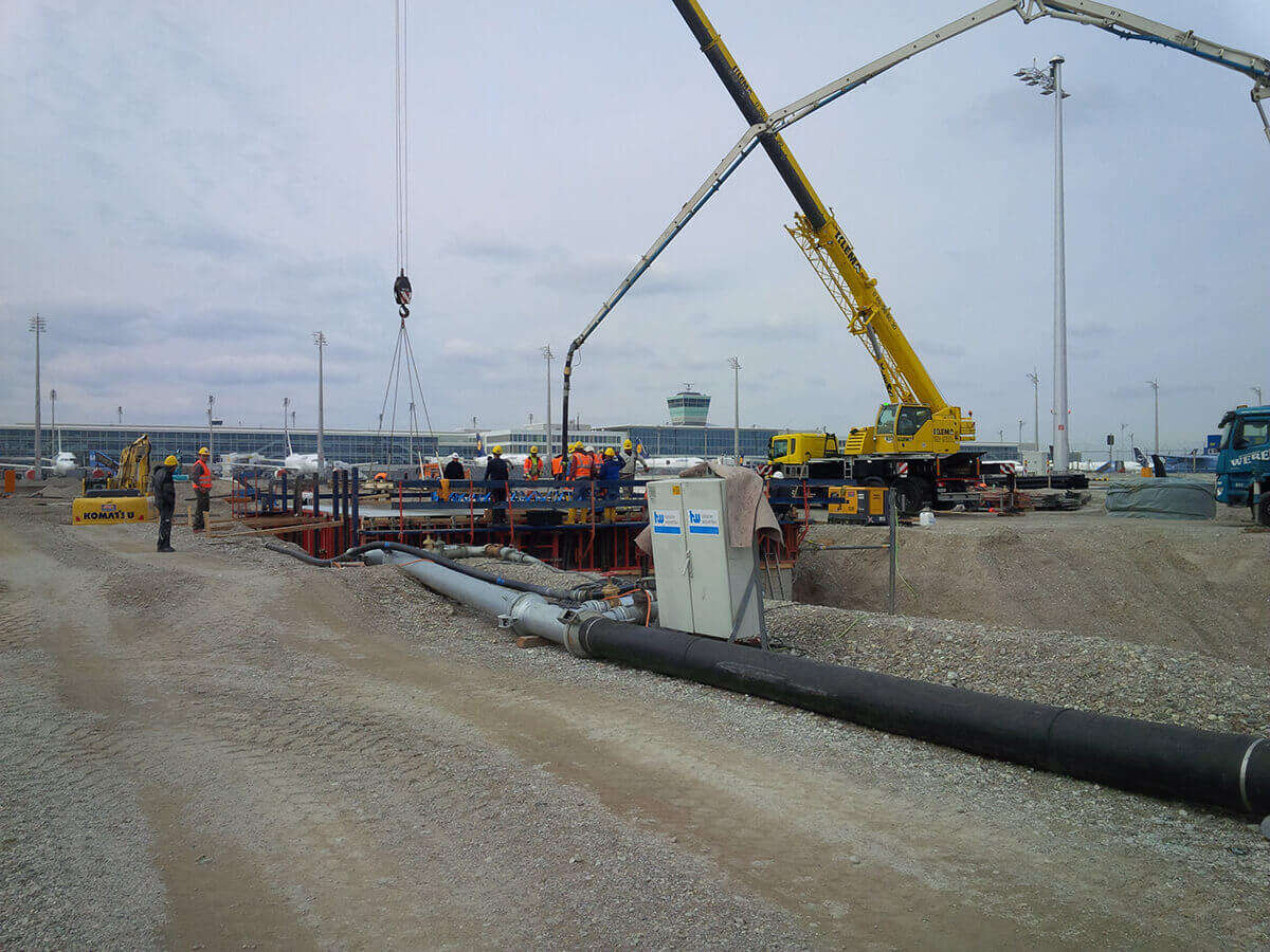 Für eine Flugfeld-Betankungsanlage stellen Gesetzgeber und Betreiber besondere Ansprüche an die Sicherheit für Mensch und Umwelt. Hier gilt es höchste Sicherheitsstandards im Umgang mit Flüssigkeiten, die brennbar, explosionsgefährdet oder wassergefährdend sind, einzuhalten. Bei Beschichtungen von Auffangräumen in EX-Bereichen ist neben den originären WHG-Anforderungen, einer dauerhaften Haltbarkeit und Dichtheit, zusätzlich eine Leitfähigkeit der Oberfläche zu gewährleisten. Um eine Entzündung von Flüssigkeiten und Gasen durch Entladung zu verhindern, ist eine Ableitung möglicher elektrostatischer Ladungen über eine, im Beschichtungsaufbau enthaltene Leitschicht erforderlich.