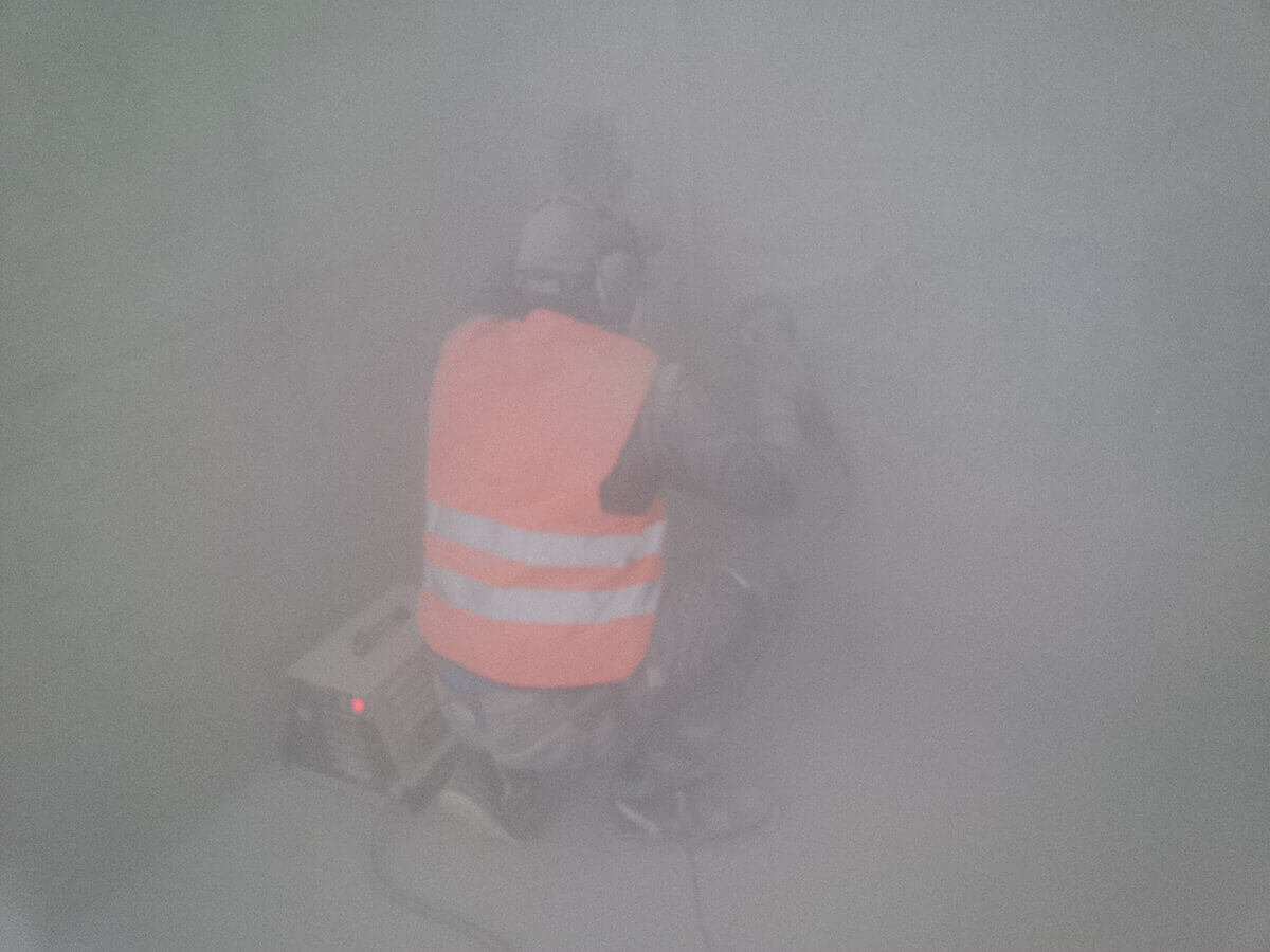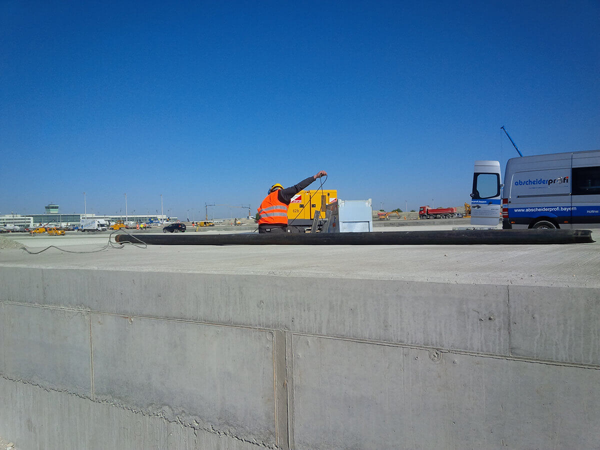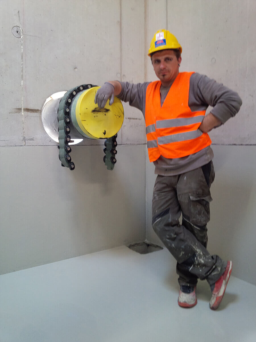 Detailbild: Monteur beim Abschleifen der WHG Fläche