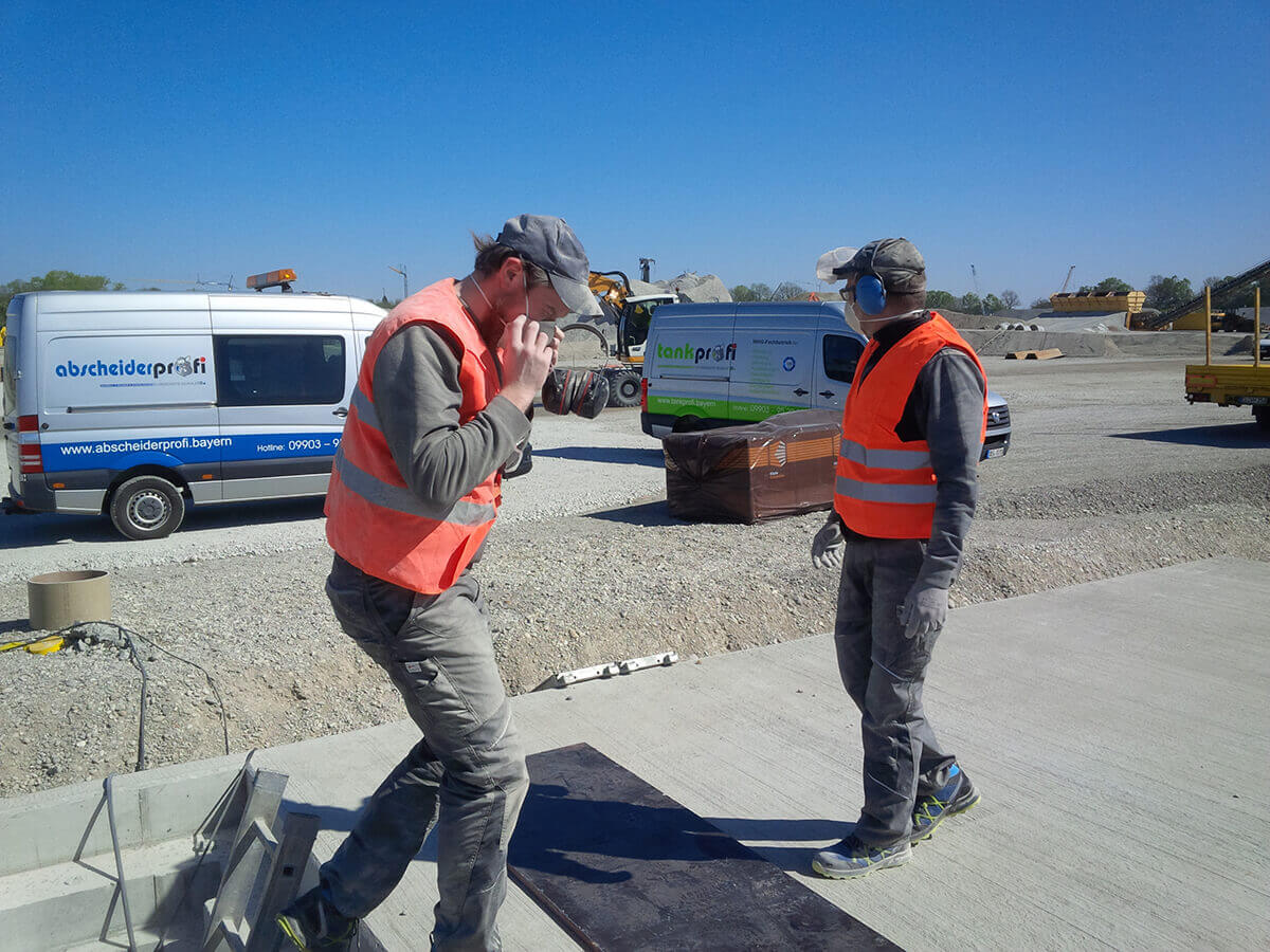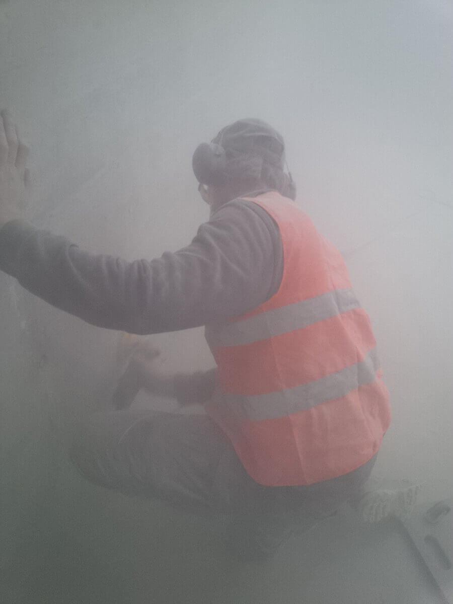 Übergang zur Reinigung des Behälters nach den Schleifarbeiten