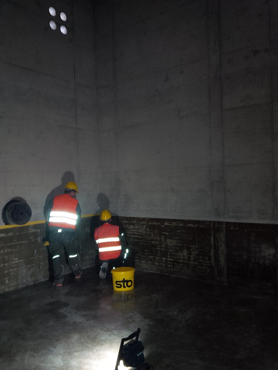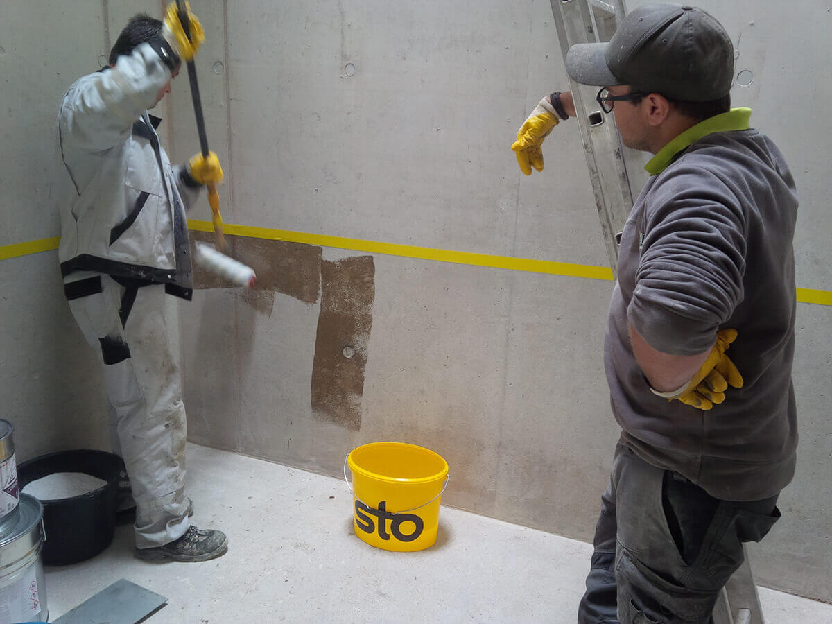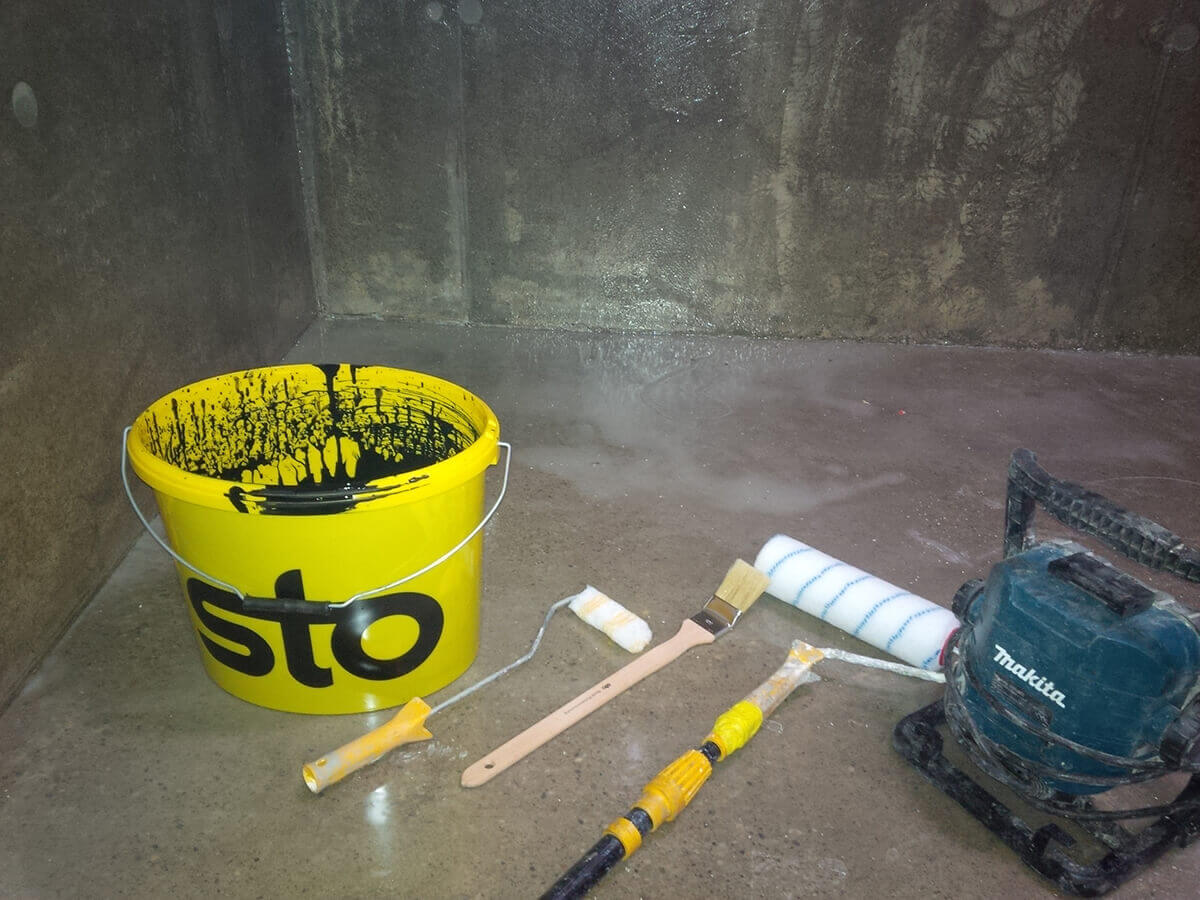 Aufbringen Grundschicht StoPox WHG Grund zur Herstellung der WHG-Wanne / Primerschicht (1)
