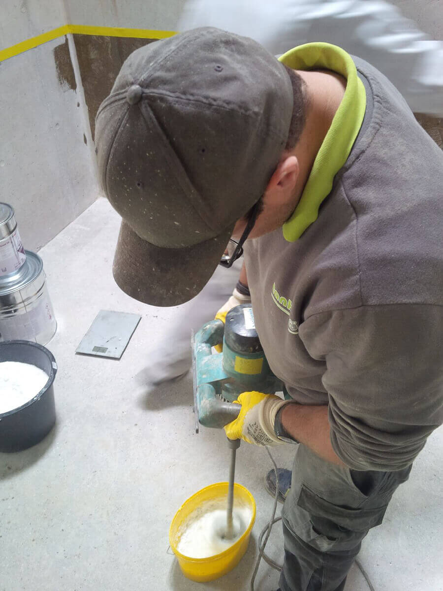 Mischen & Anrühren der WHG Grundbeschichtung mit Stellmittel für die Seitenwand