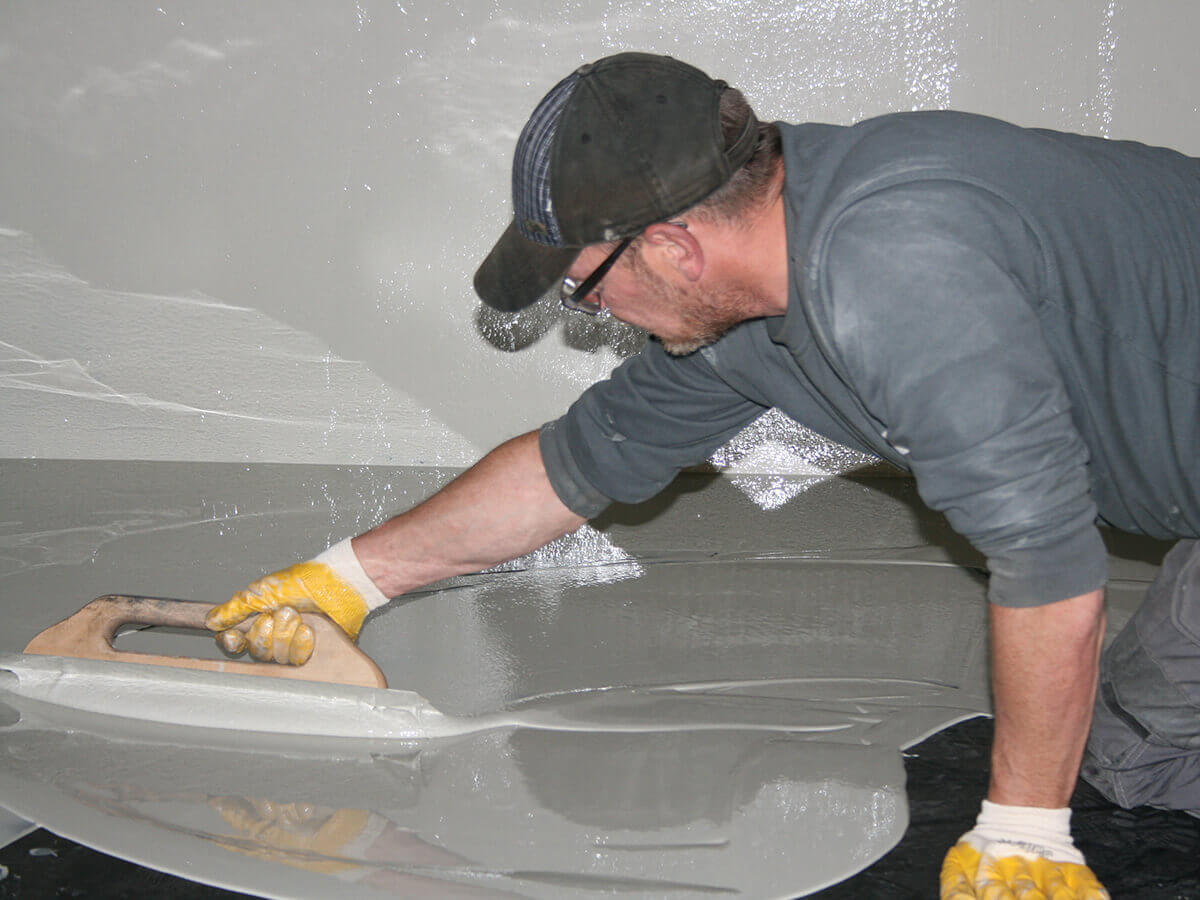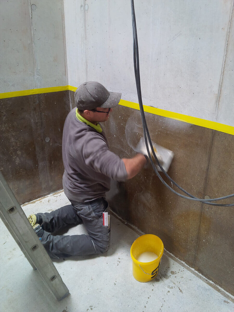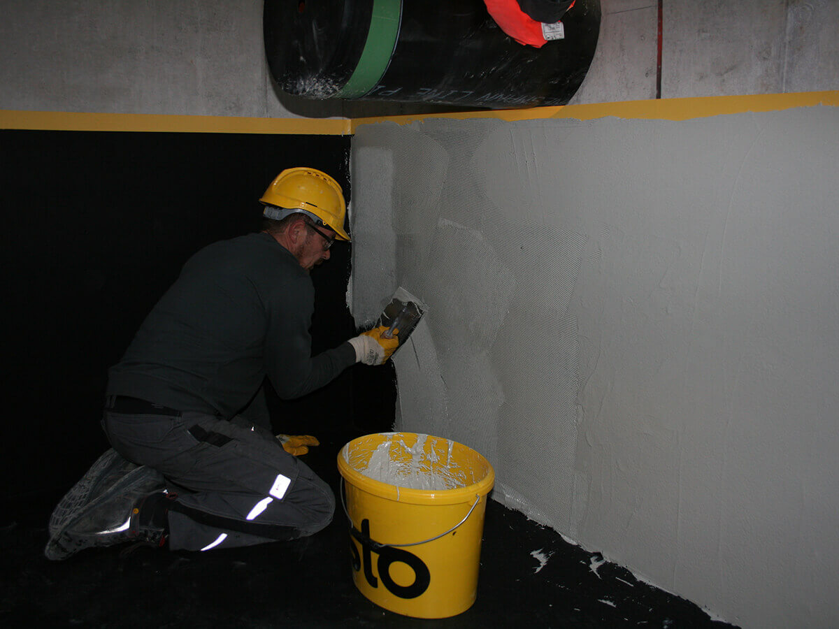 Aufbringen der WHG Grundschicht (mit Stellmittel) an den Seitenwänden (2)