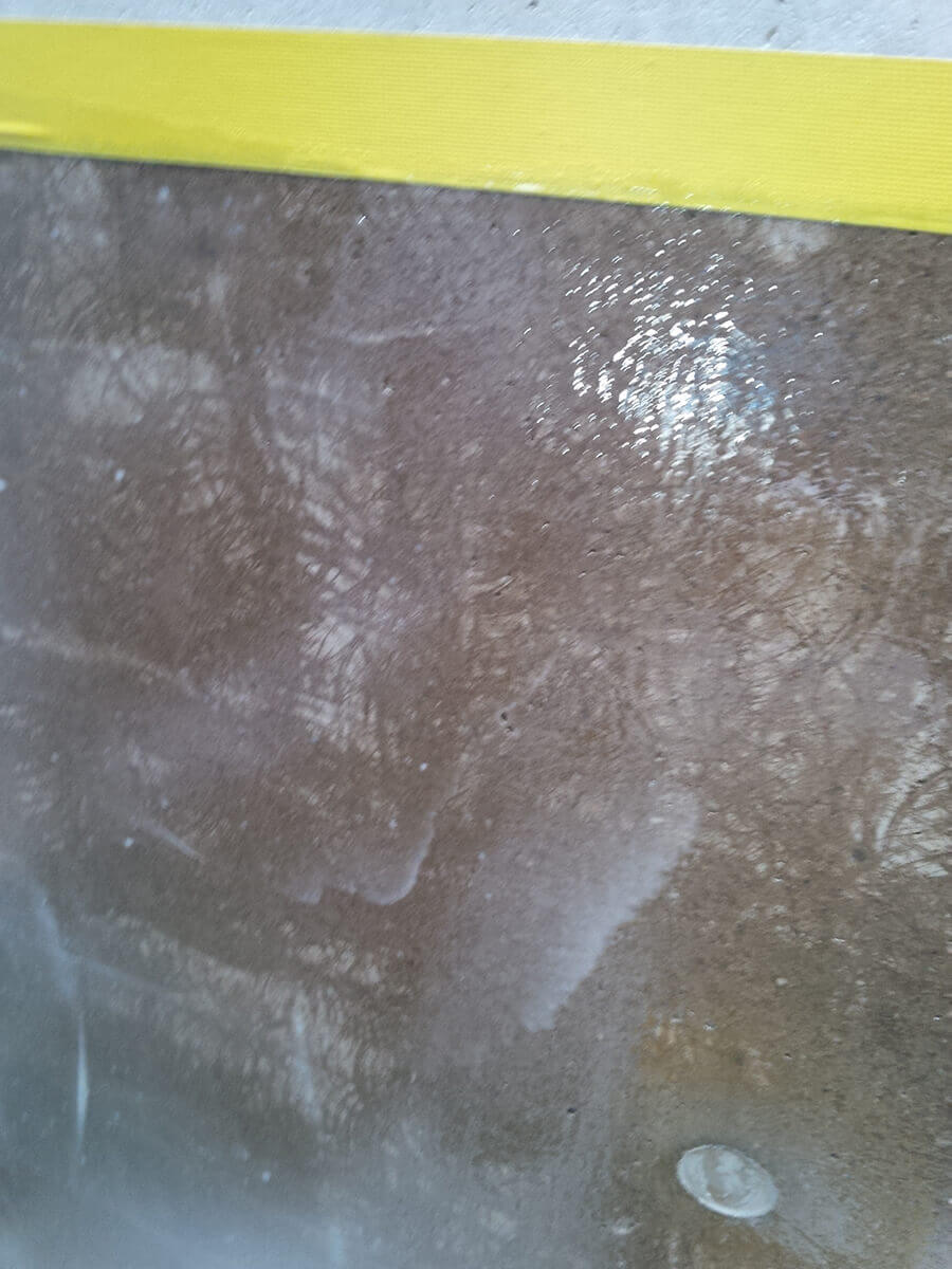 Detailsicht auf ausgehärtete WHG Grundbeschichtung (Fa. STO) vor Aufbringen der Leitschicht (Anforderung für EX-Bereich)