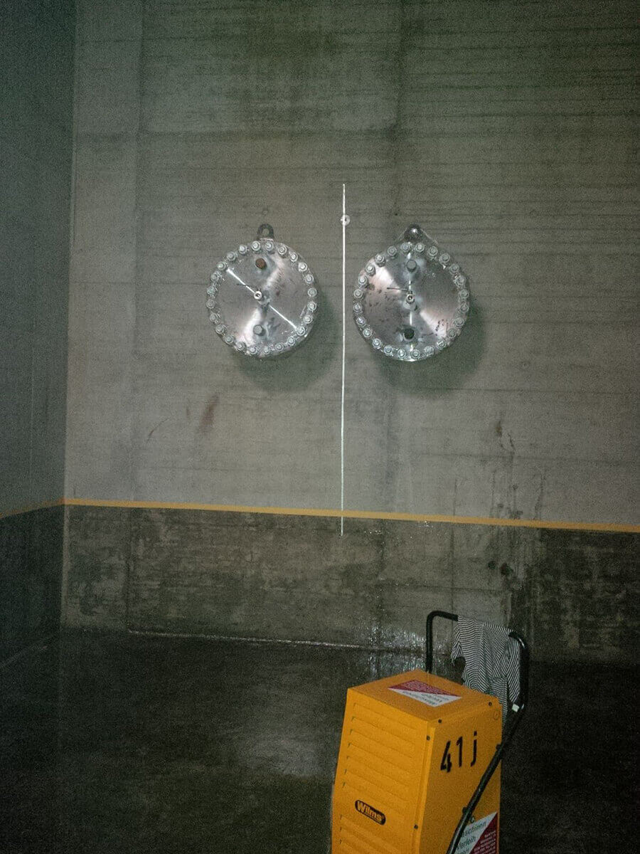 Sicht auf einen der Havarie Behälter von außen, teilverfüllt