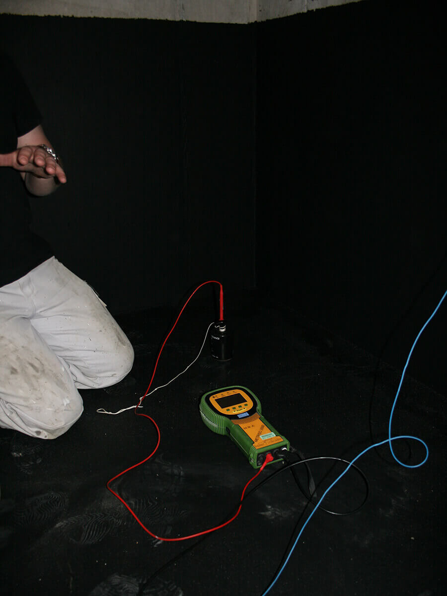 Aufbau der Messapparatur zur Messung der Leitfähigkeit der WHG Wanne für den EX-Bereich